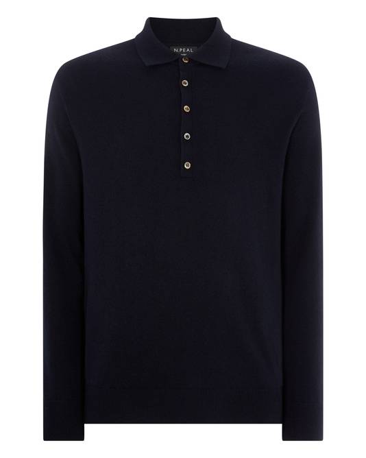 007 5 Button Cashmere Polo Shirt In Navy Blue