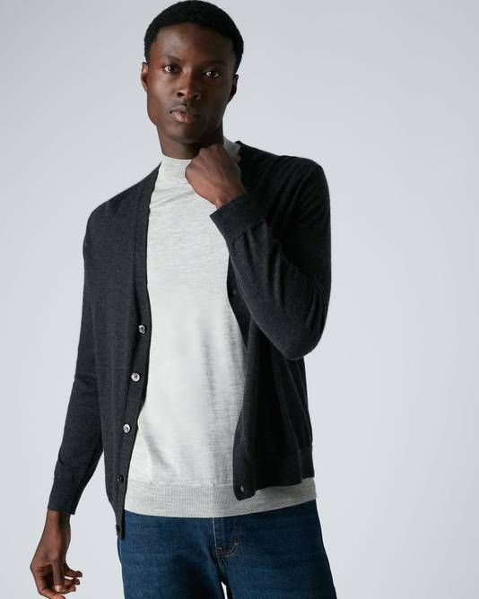 Men's Curzon Fine Gauge Cashmere Cardigan In Dark Charcoal Grey