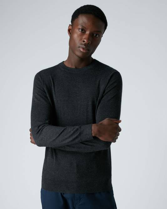 Men's Covent Fine Gauge Cashmere Round Neck Jumper In Dark Charcoal Grey