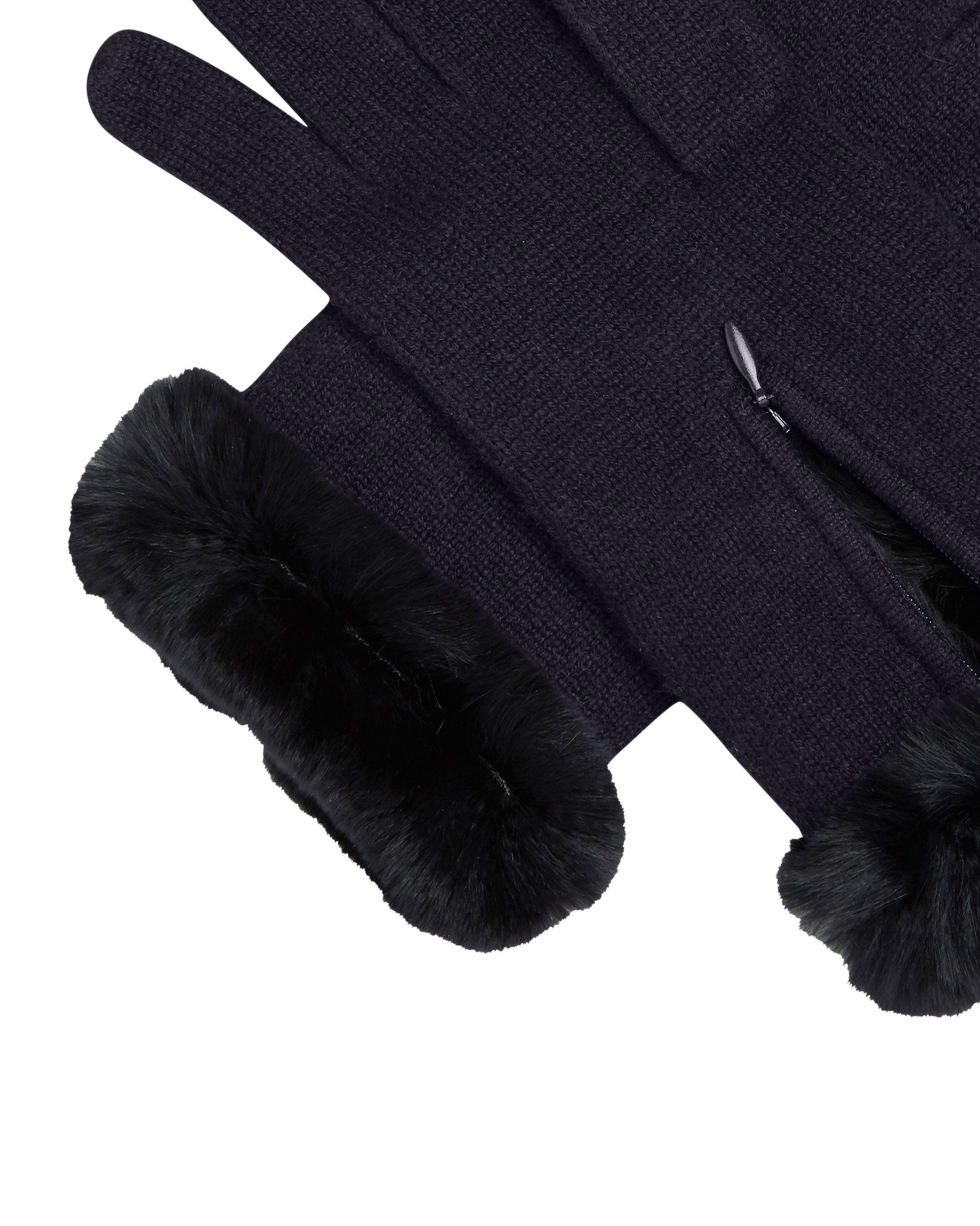 Women's Fur Trim Cashmere Gloves In Navy Blue