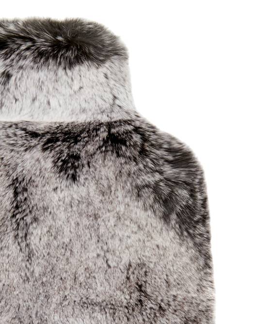Fur Hot Water Bottle Cover In Charcoal Grey Tipped Fur