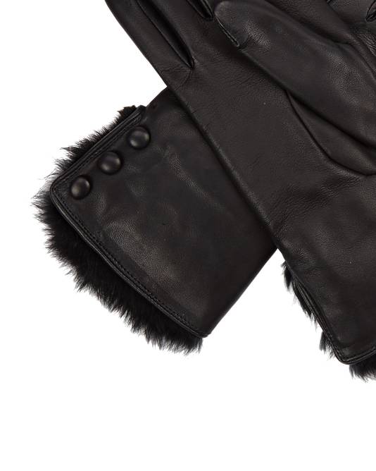 Women's Fur Lined Leather Gloves In Black