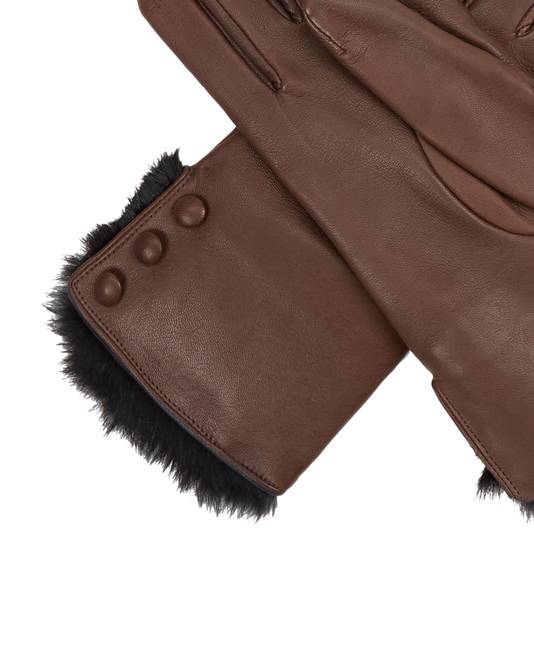 Women's Fur Lined Leather Gloves In Mocha Brown