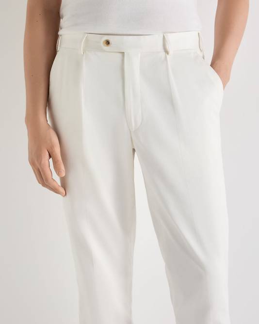 A clean, confident staple designed to anchor warm-weather dressing. This cotton trouser balances tailored lines with everyday ease, offering a polished silhouette that travels effortlessly...