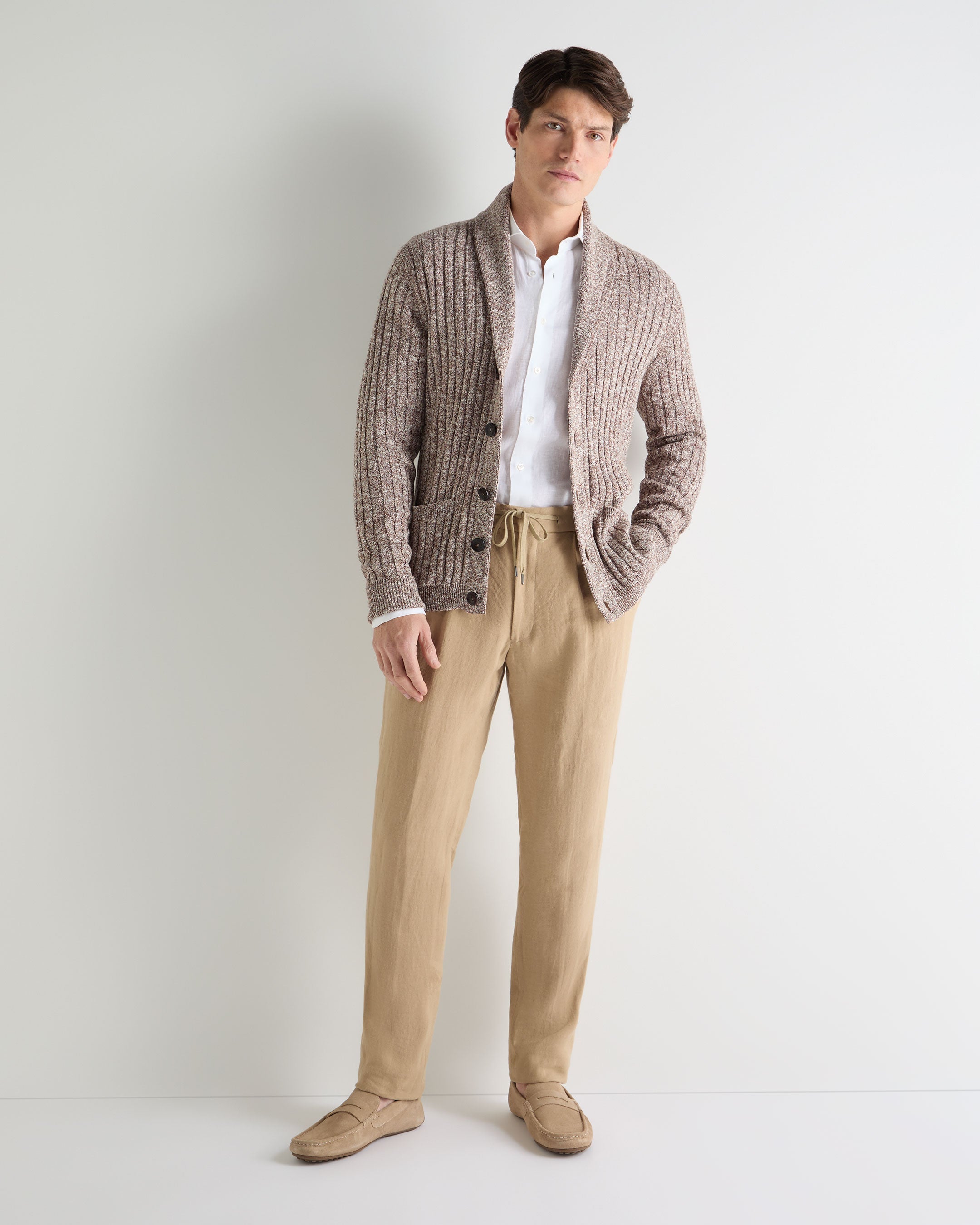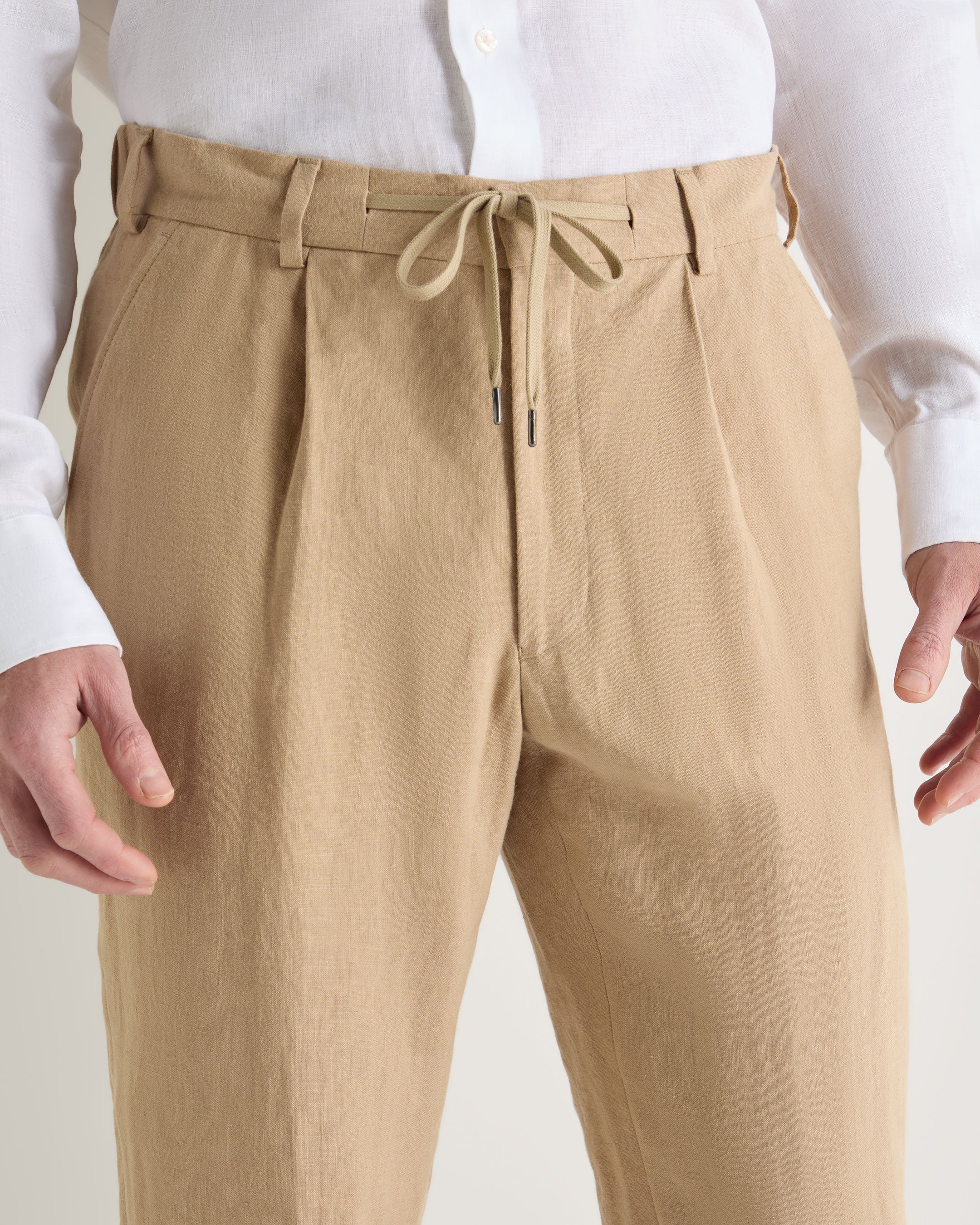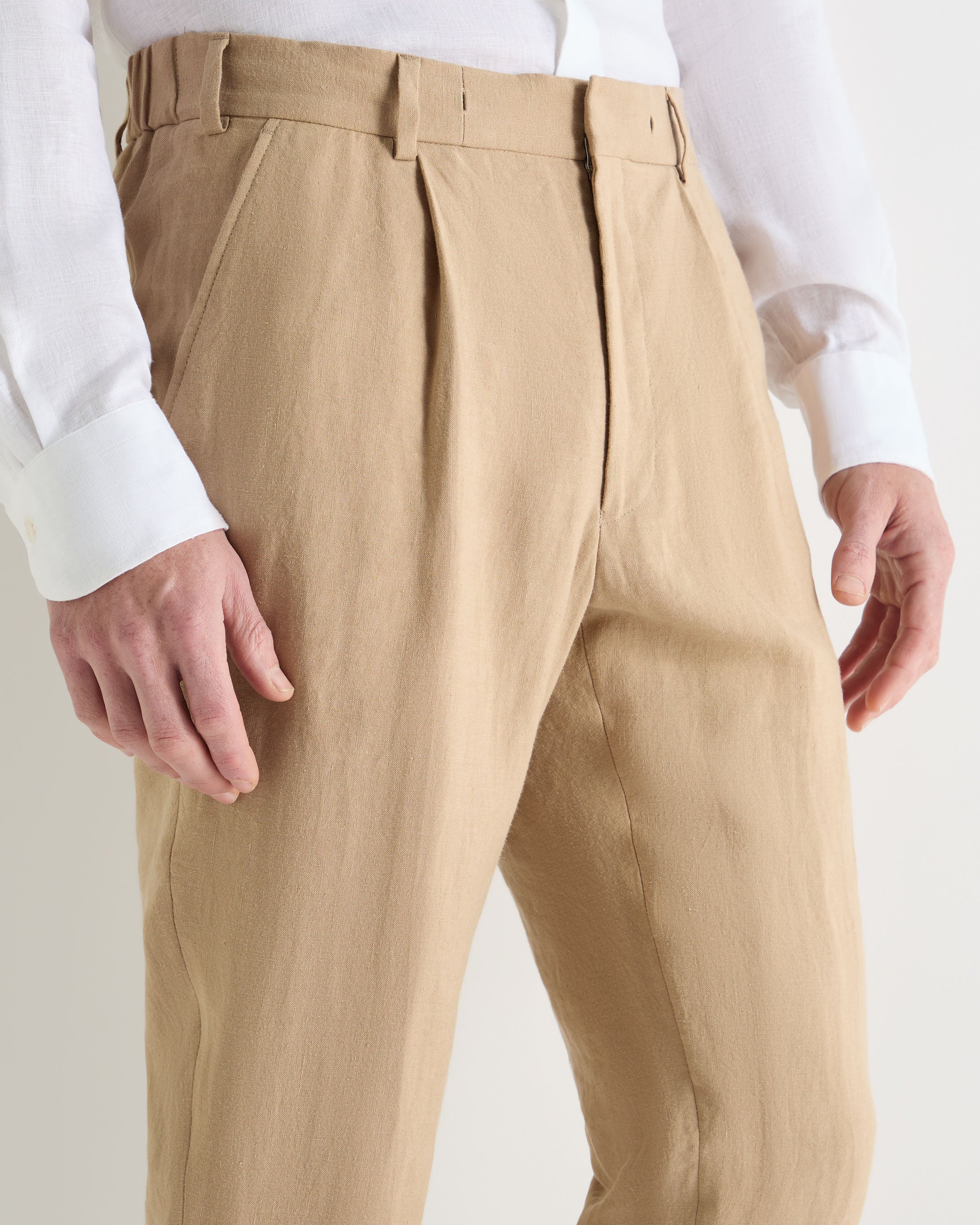 A warm-weather staple with an elevated ease, these linen trousers deliver a refined yet relaxed approach to summer dressing. Tailored enough for smart lunches yet comfortable for long, sunlit afternoons, they strike the perfect balance between polish and laid-back sophistication.