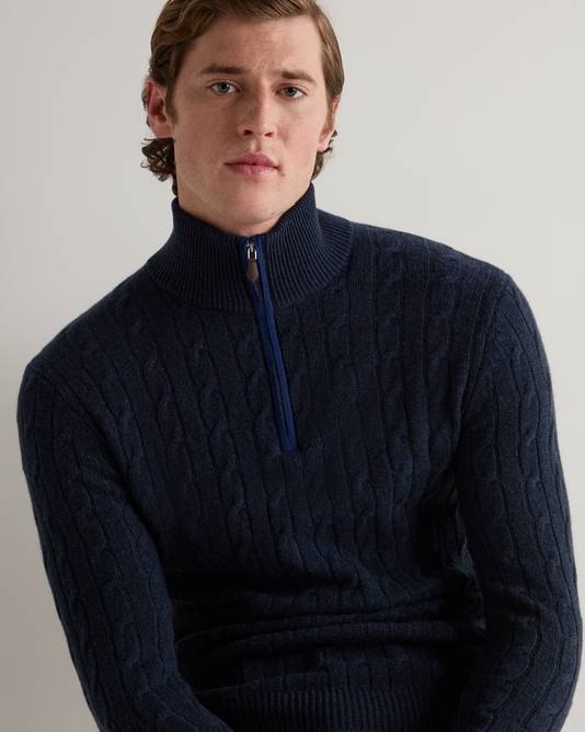 Men's Albemarle Cable Half Zip Cashmere Jumper In Indigo Blue