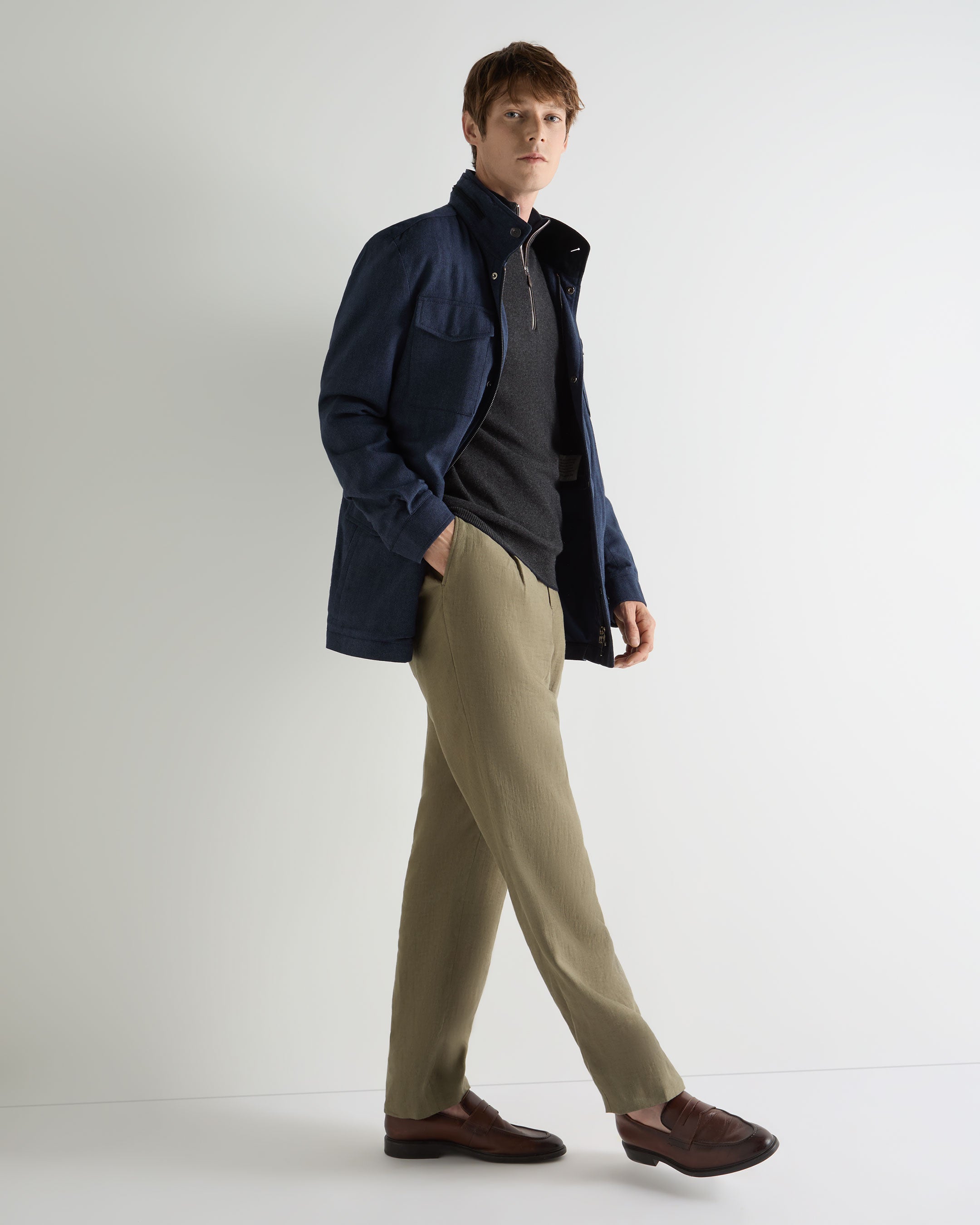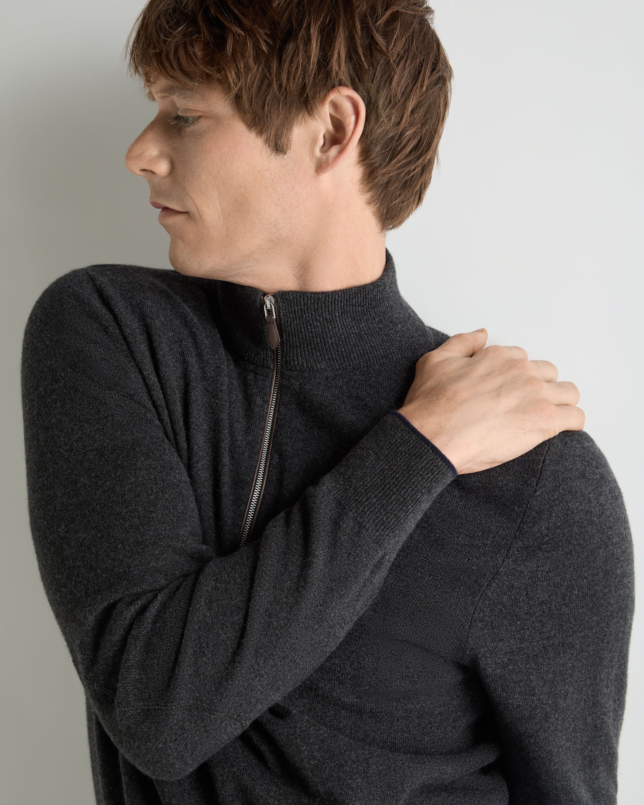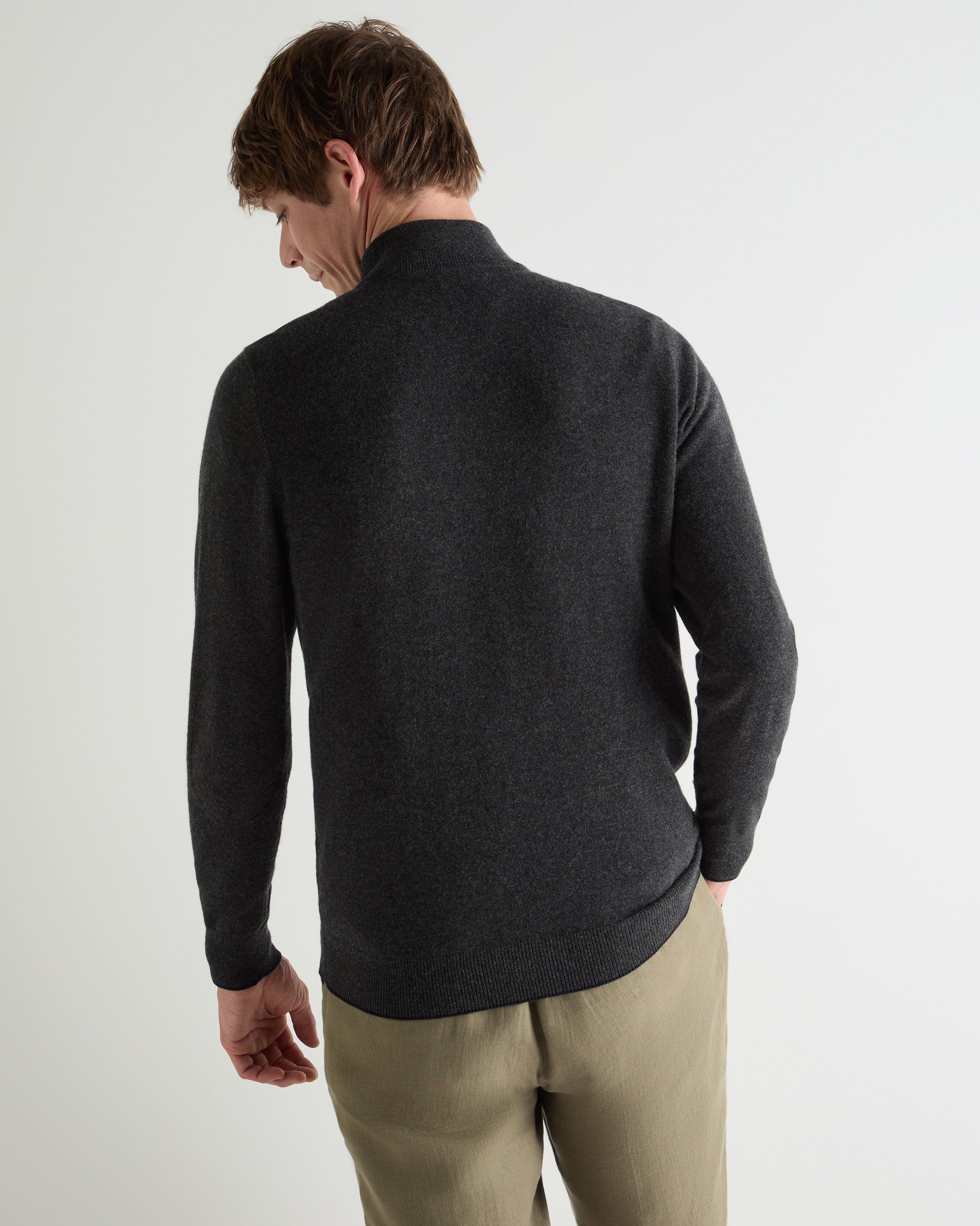 A timeless layer designed for refined versatility, this half-zip jumper blends relaxed sophistication with everyday ease. Knitted from 100% organic 1-ply cashmere, it offers breathable warmth and a luxuriously soft touch — perfect for effortless transitions between laid-back weekends and polished weekday dressing.