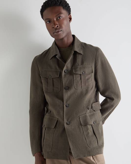 Men's Casablanca Linen Jacket In Arabica Khaki Green
