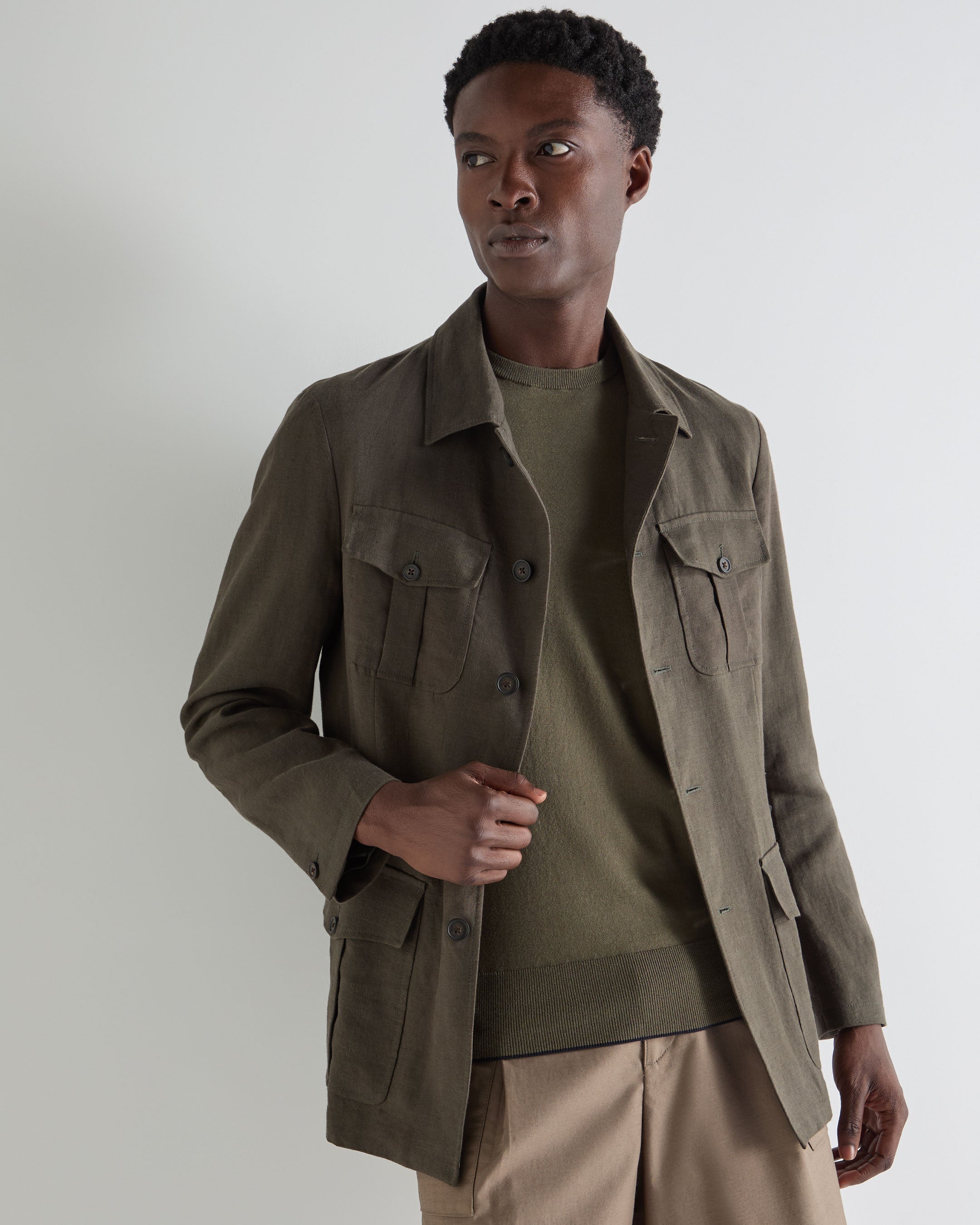 Designed with warm-weather travel in mind, this summer jacket takes cues from classic safari styling and refines them through a modern, relaxed lens. Crafted for days spent moving between cities, coastlines and countryside escapes, it offers an easy layer that feels purposeful yet unforced — ideal when the itinerary is open and the pace is unhurried.