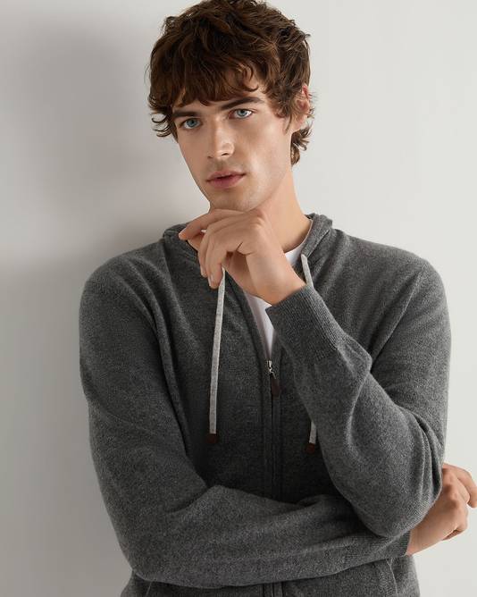 Leisure and luxury is combined here in a cashmere hooded zipped top.