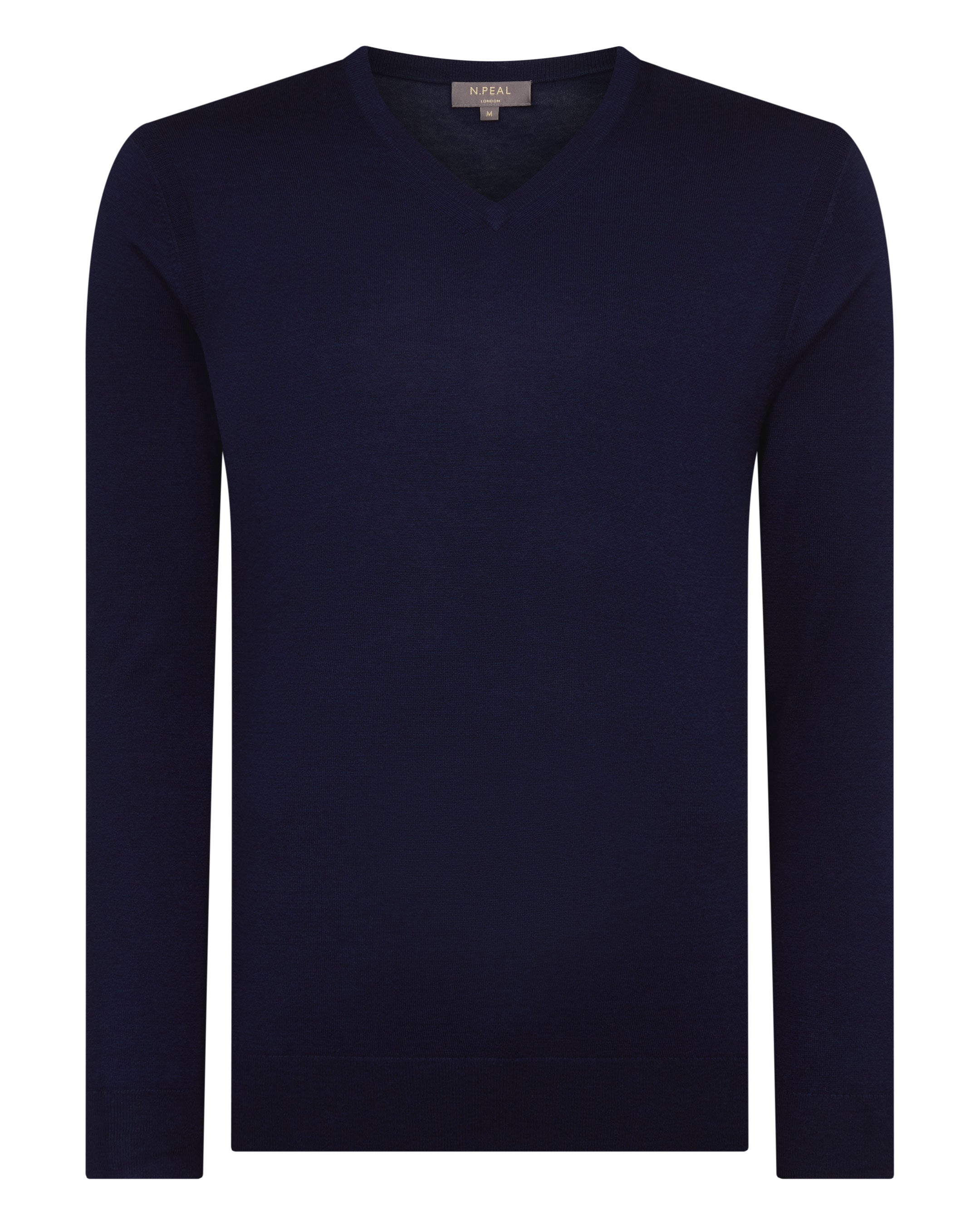 Men's Conduit Fine Gauge Cashmere V Neck Jumper In Summer Navy Blue