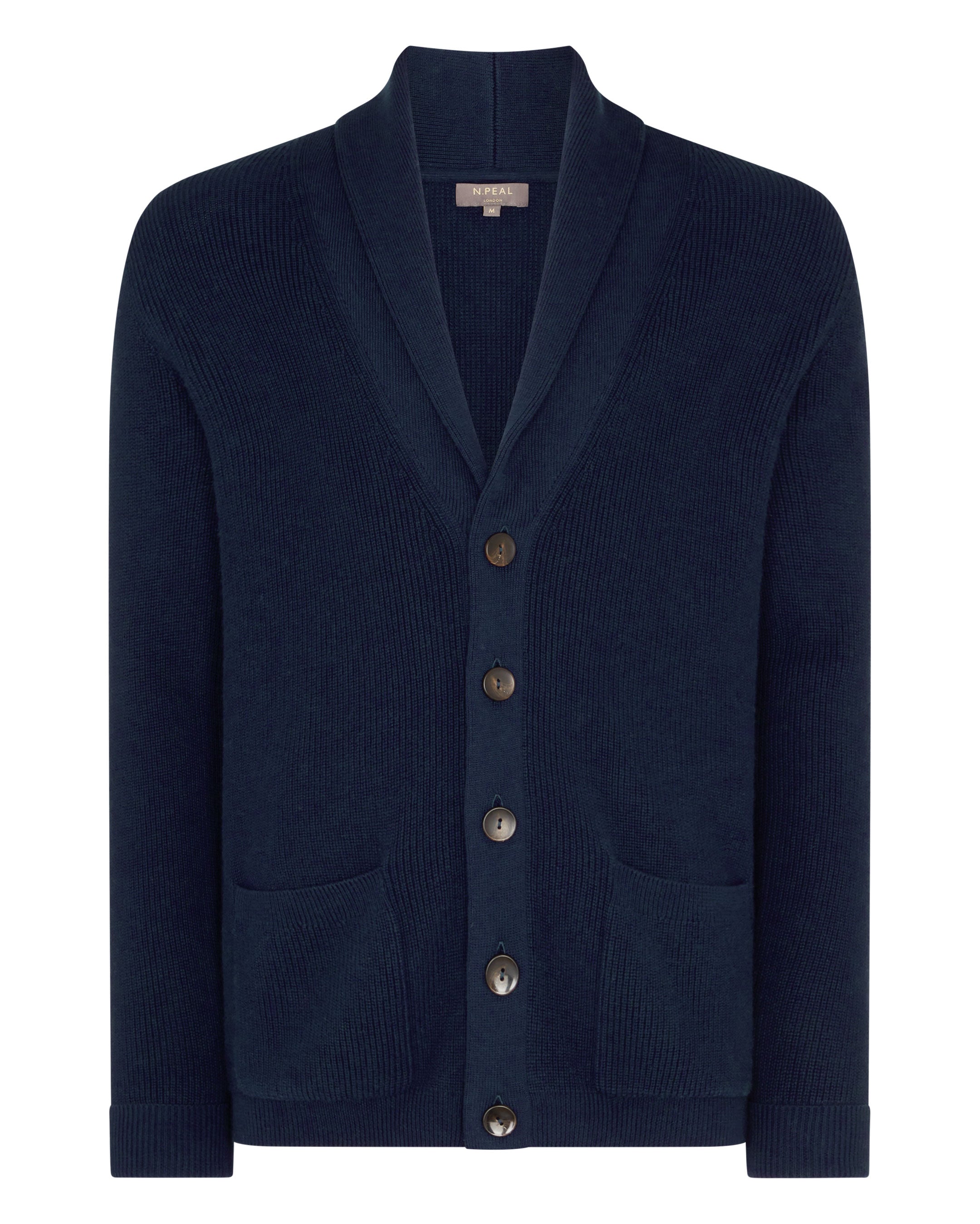 Men's Cotton Cashmere Silk Cardigan In Navy Blue