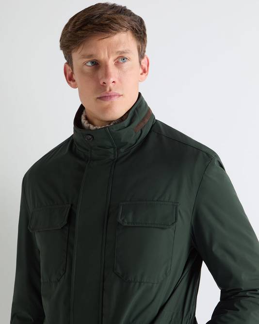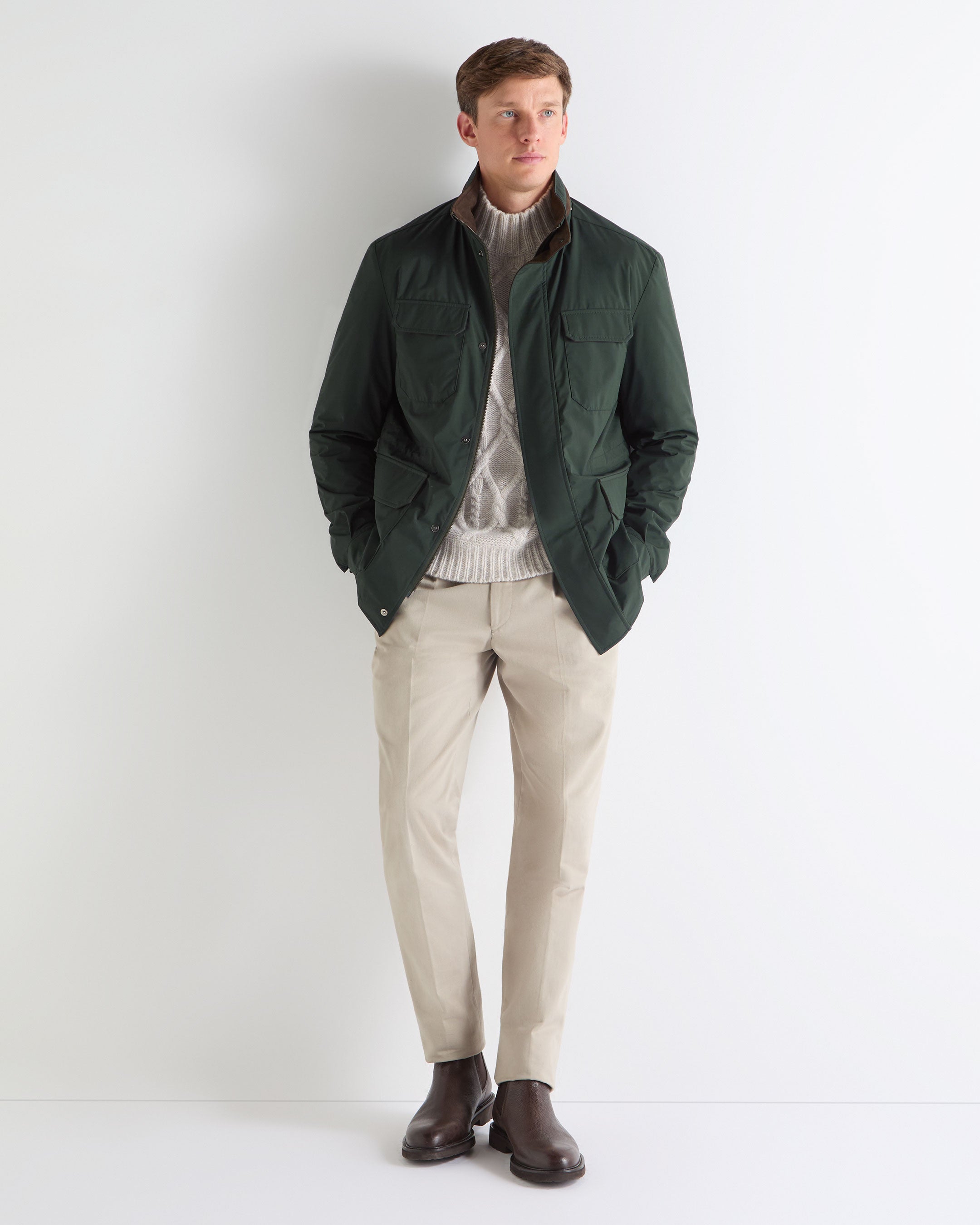 The N.Peal Vale Utility Jacket is enhanced by fresh fabrications with our high quality technical Weather system fabric. The fabric embodies sophisticated comfort whist providing water repellence and wind resistance properties. The Cotton Cashmere lining and lightweight down padded membrane provide a versatile weight without compromising on protection from the elements.