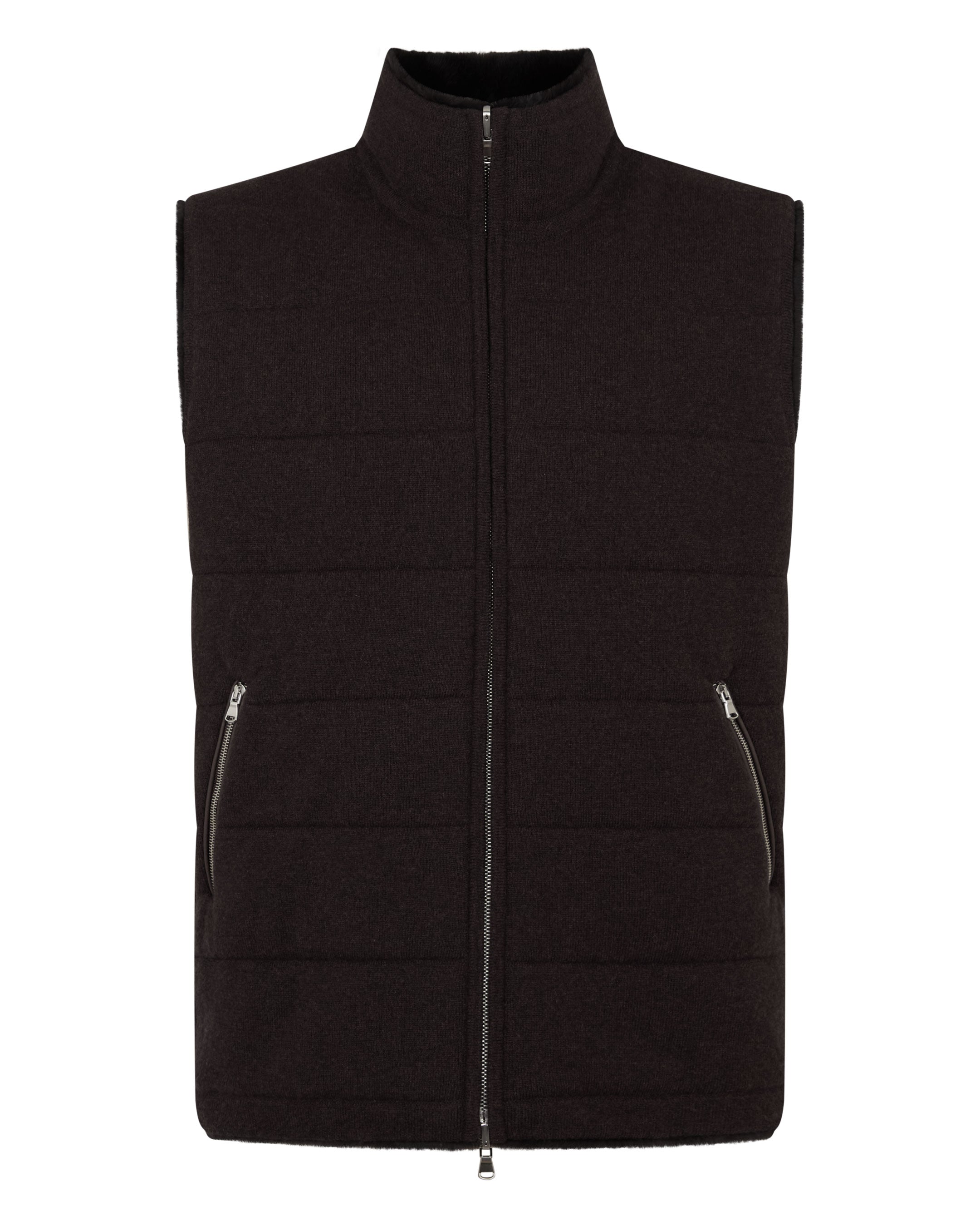 The ultimate expression of elevated comfort, this reversible gilet brings together refined design and luxurious warmth. Crafted from 100% cashmere with an indulgent rex fur lining, it offers two sophisticated looks in one — ideal for both city layering and weekend escapes.