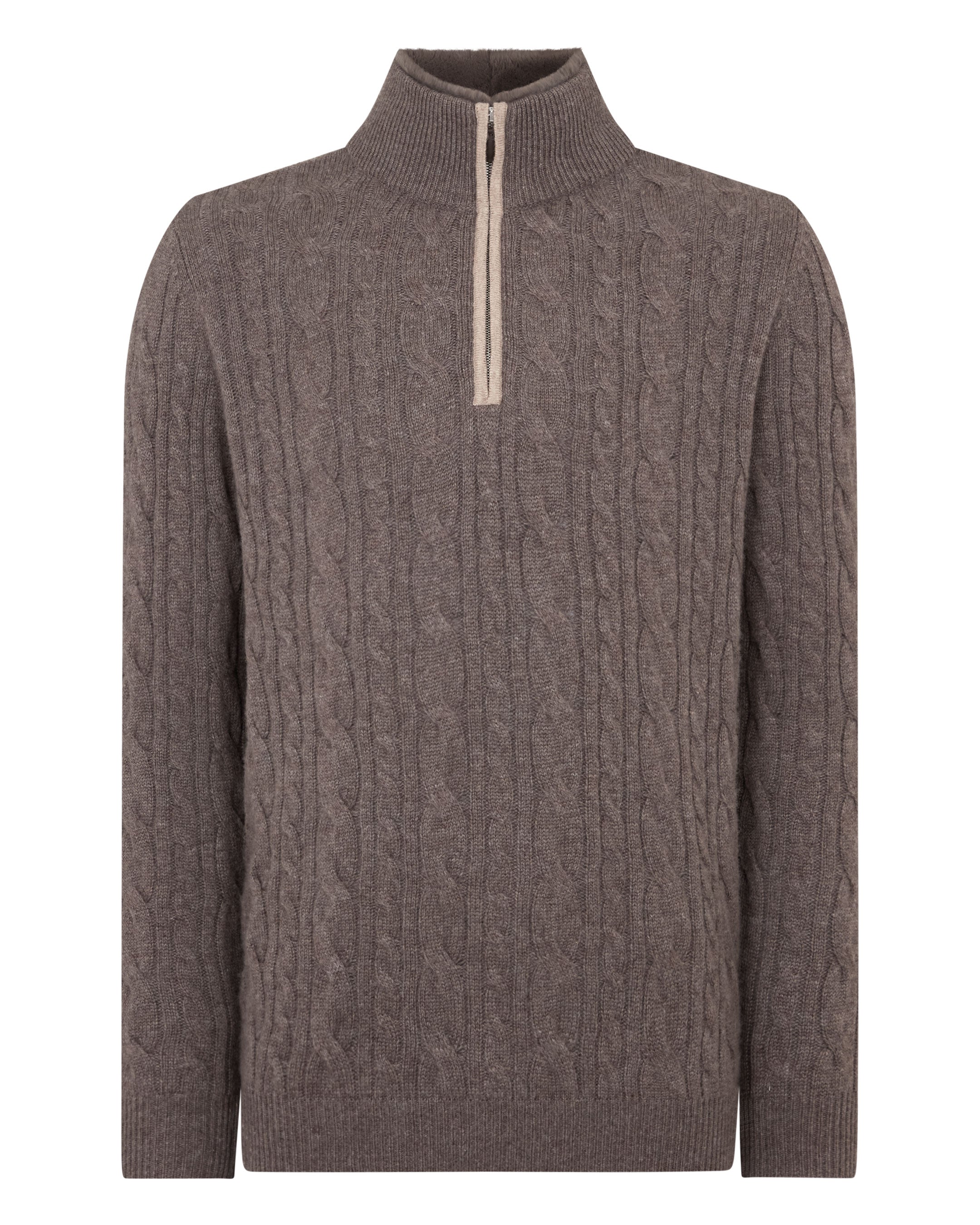 Men's Fur Trim Half Zip Cashmere Jumper In Otter Brown