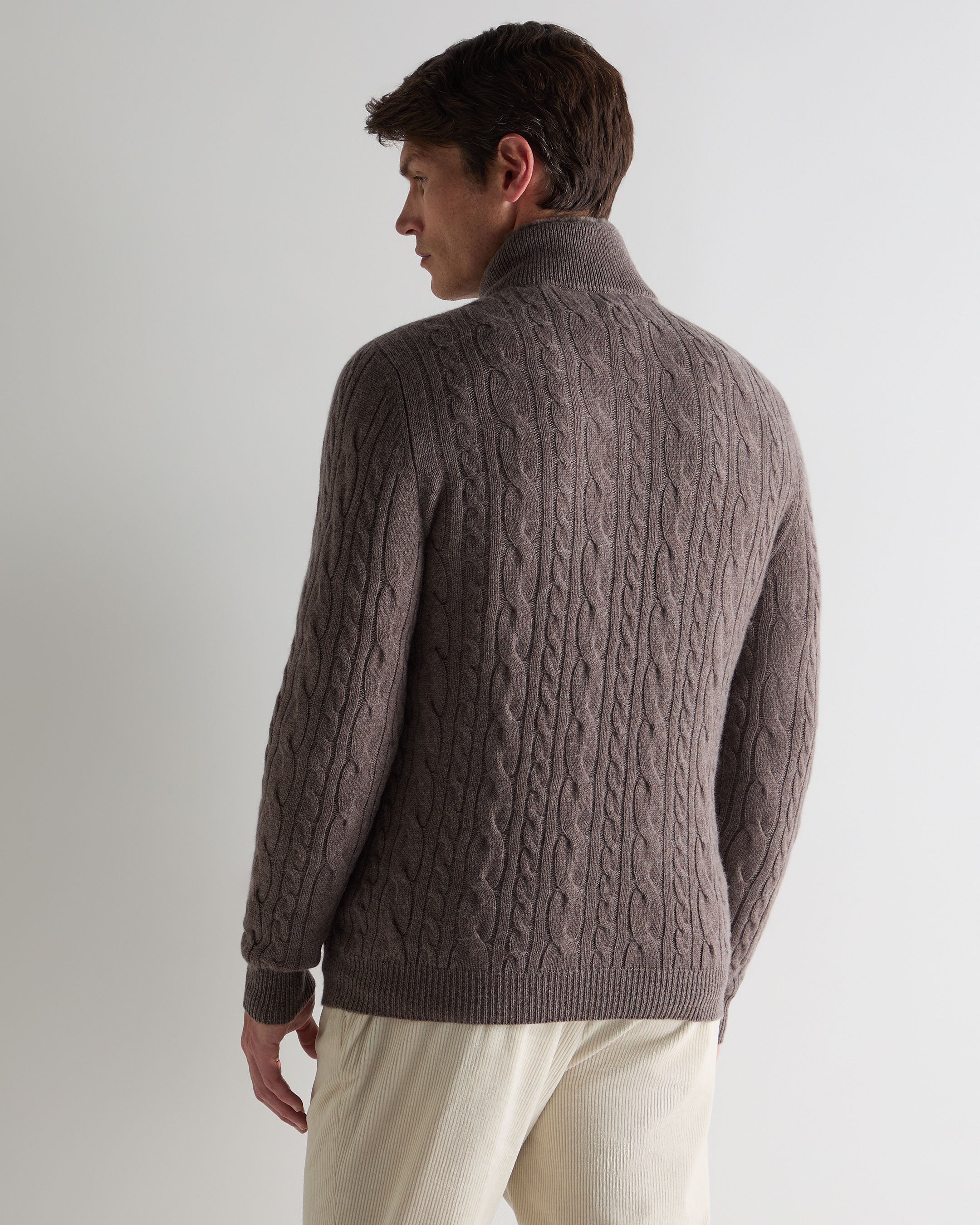 A sophisticated staple for journeys near or far, this cable-knit half-zip jumper combines craftsmanship, comfort and modern versatility. Knitted from 100% 2-ply cashmere and finished with a soft shearling inner collar, it delivers effortless warmth and refinement — equally at home in the city or on winter escapes.