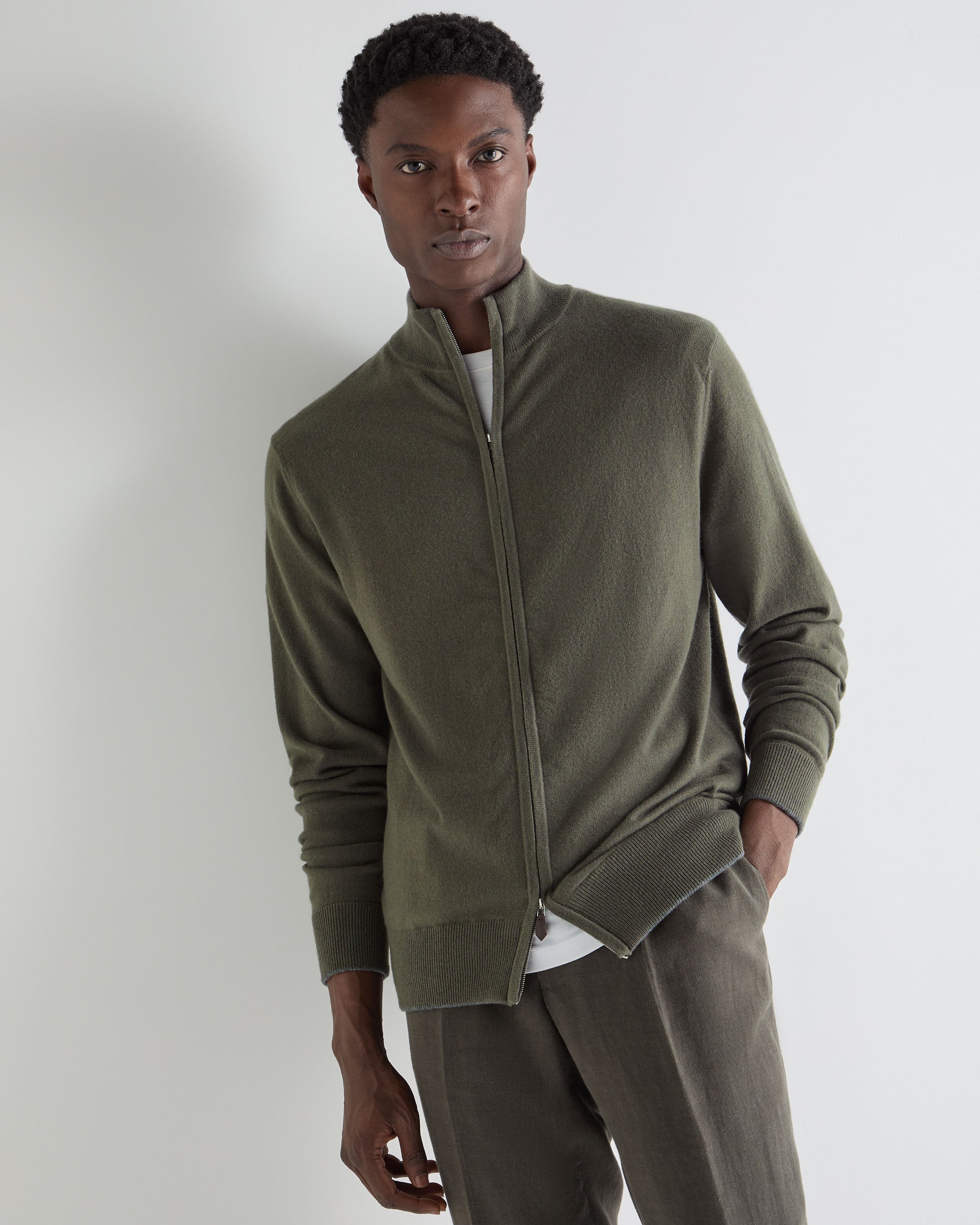 A refined staple for effortless layering, this full-zip jumper combines contemporary versatility with timeless appeal. Knitted from 100% organic 1-ply cashmere, it delivers a luxuriously soft feel and breathable warmth — equally suited to relaxed weekends or polished travel dressing.