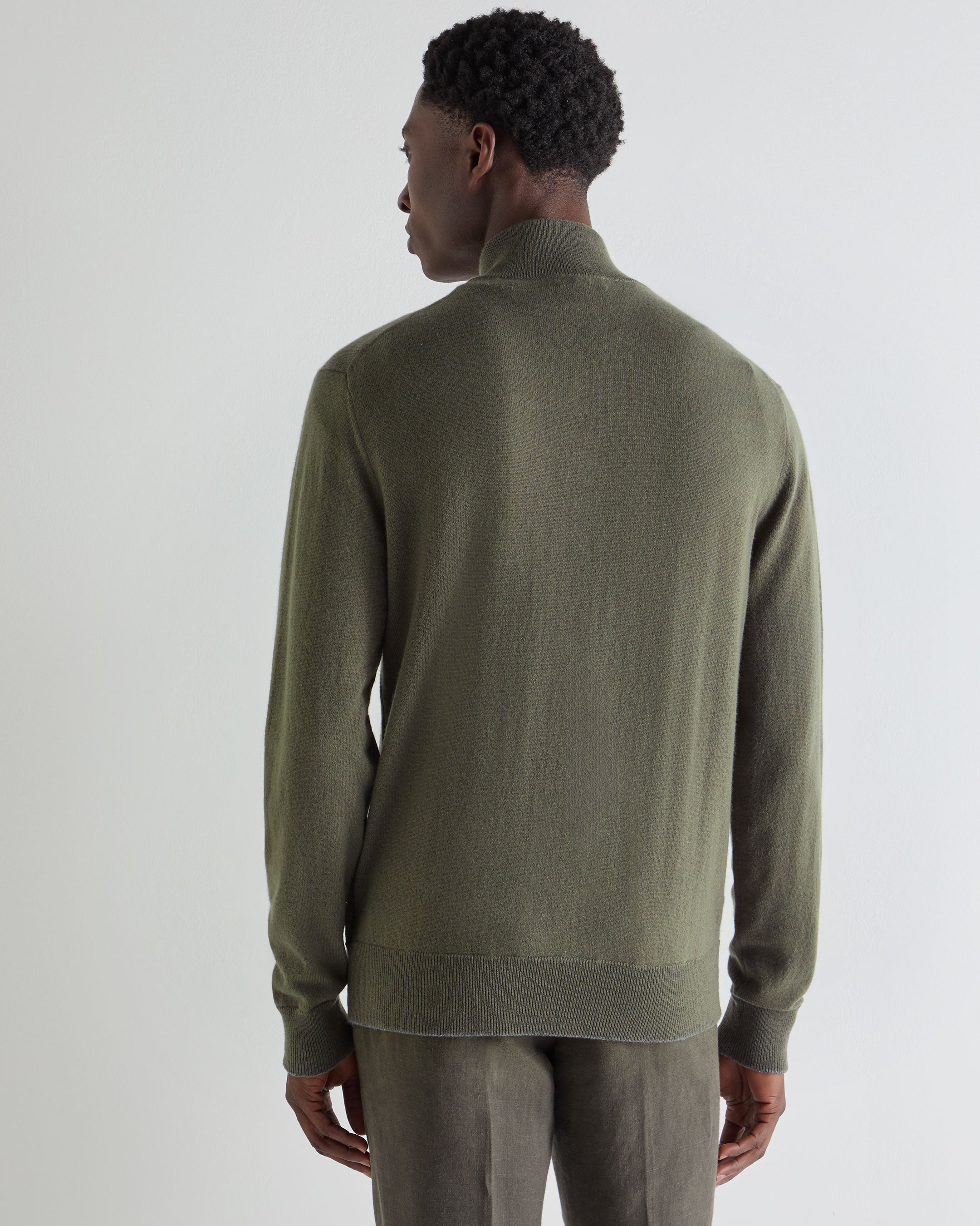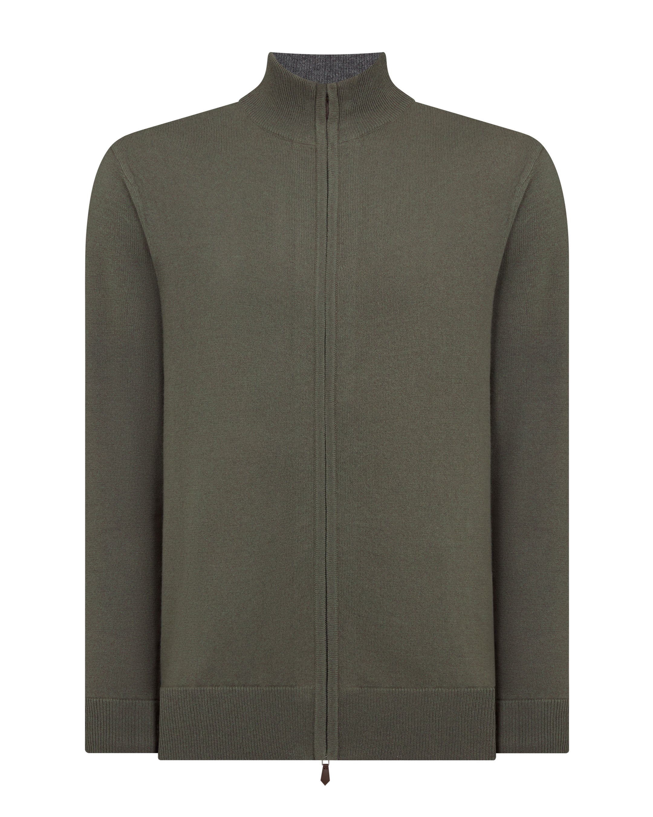 Men's Knightsbridge Full Zip Cashmere Jumper In Olive Green