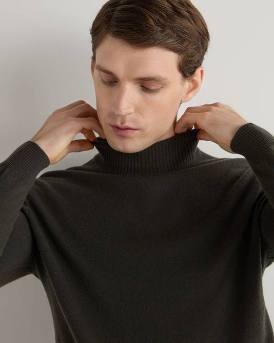 Men's Mayfair Turtle Neck Cashmere Jumper In Arabica Khaki Green
