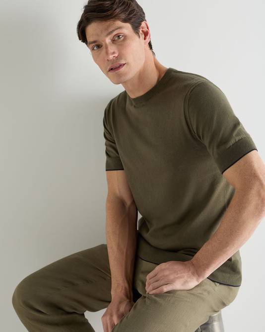 Men's Newquay Cotton Cashmere T-Shirt In Khaki Green