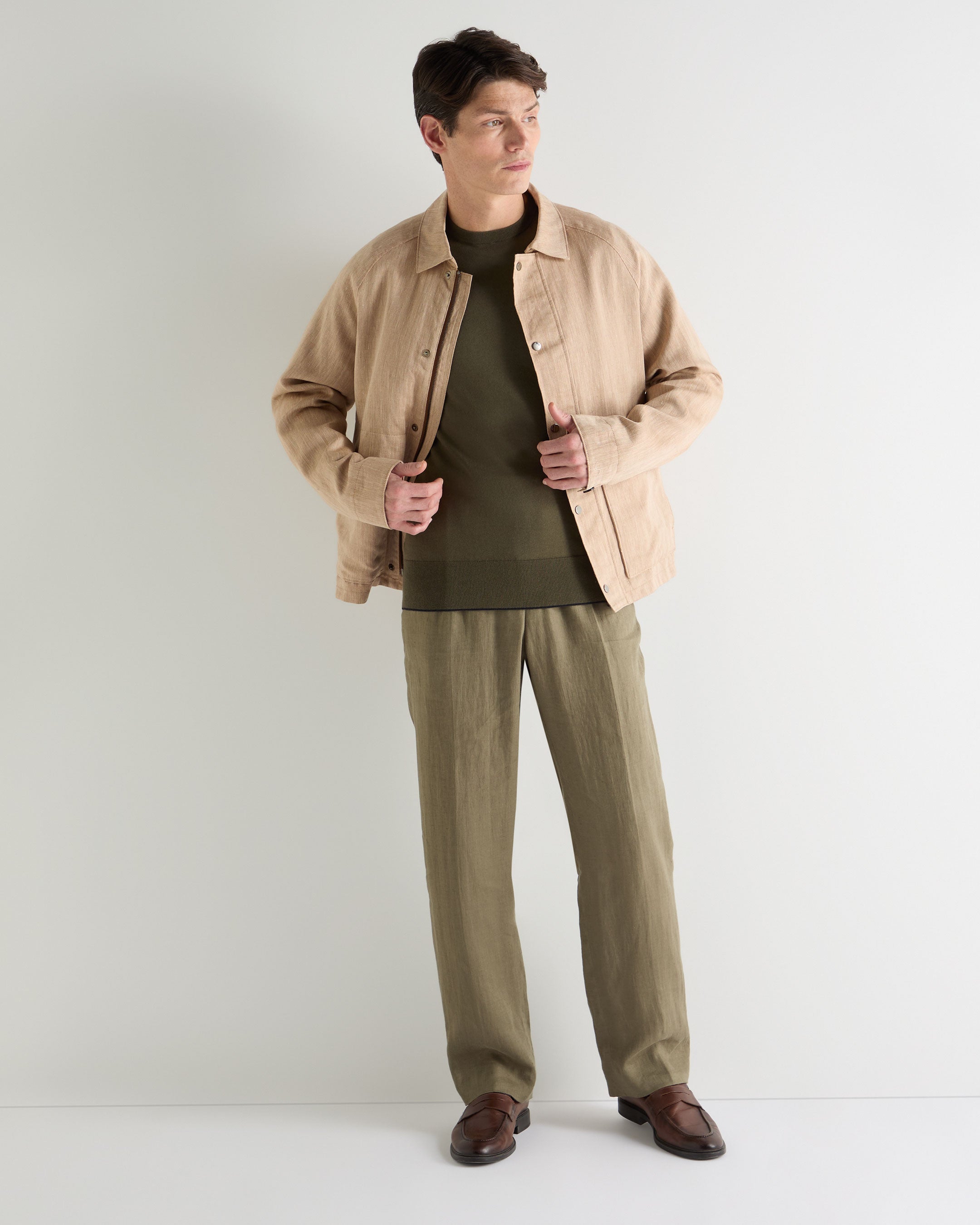 – Crafted from a considered blend of 85% Supima USA-grown cotton and 15% cashmere, combining natural breathability with a soft, elevated handle
