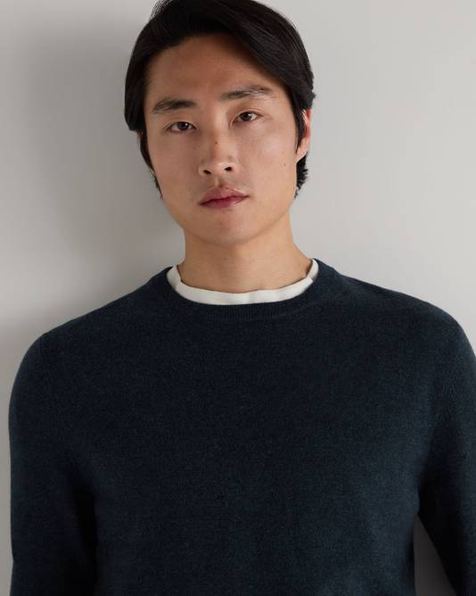 Men's Oxford Round Neck Cashmere Jumper In Indigo Blue