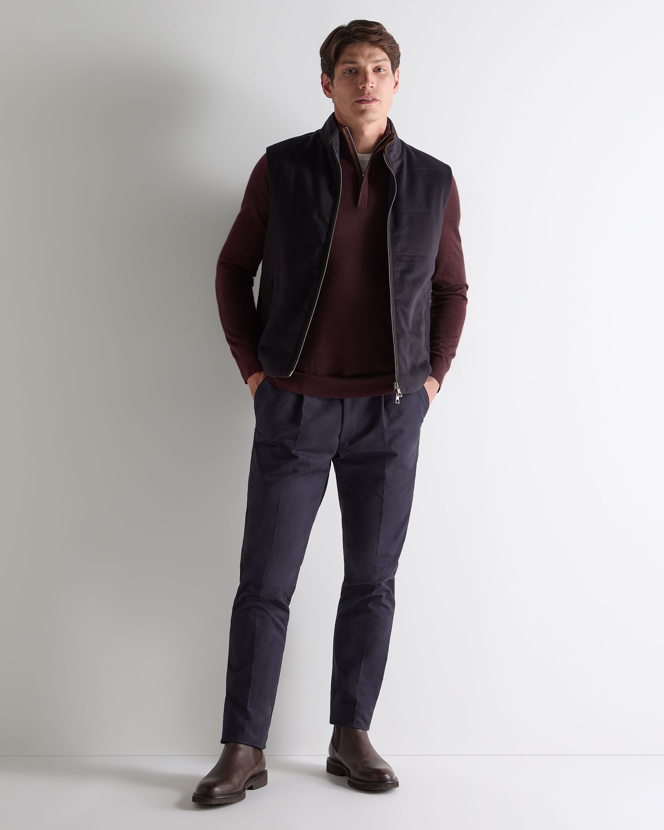 The Regent, our half zip fine gauge summer weight sweater.