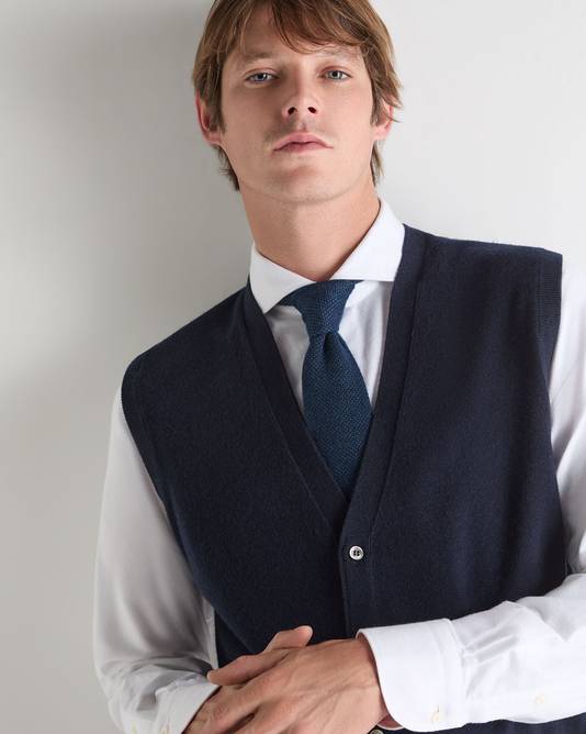 Men's Sleeveless Cashmere Tank Top In Navy Blue