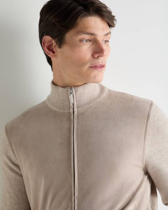 A refined expression of off-duty luxury, this suede-cashmere zip through is designed for moments when comfort and sophistication meet. Cleanly cut with a streamlined silhouette, it layers effortlessly for weekend escapes, countryside walks or unhurried travel days where comfort is elevated.