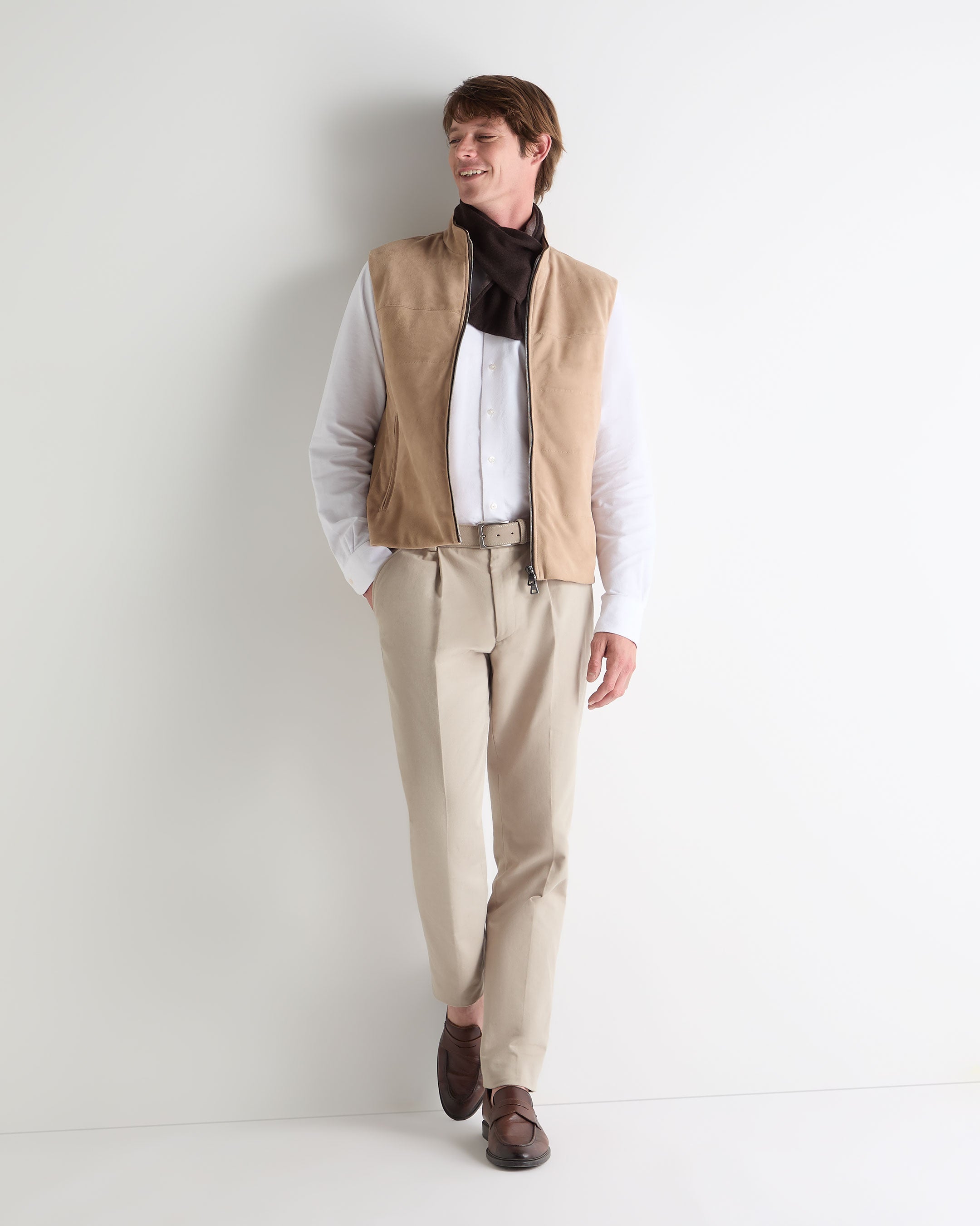 Understated, luxurious, and endlessly versatile, this suede gilet is your go-to mid-layer for transitional days. Crafted in supple suede leather with a minimalist silhouette, it offers the perfect balance of structure and softness. Layer it over fine knits or under outerwear when the temperature dips.