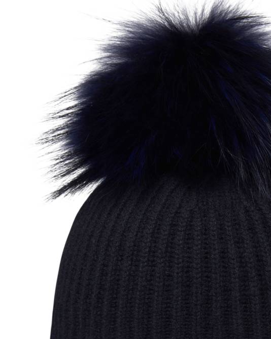 Unisex Ribbed Cashmere Hat With Detachable Pom In Navy Blue