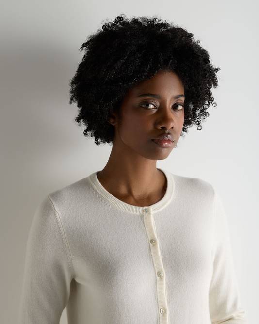 Women's Olivia Round Neck Cashmere Cardigan In New Ivory White