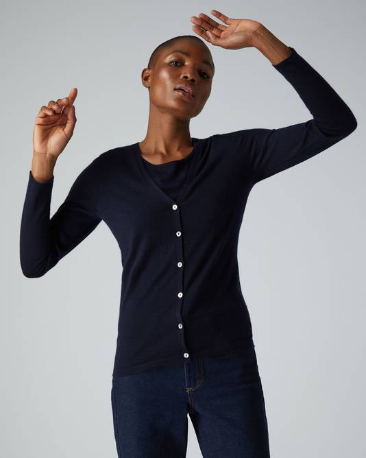 Women's Mia Superfine Cashmere V Neck Cardigan In Navy Blue