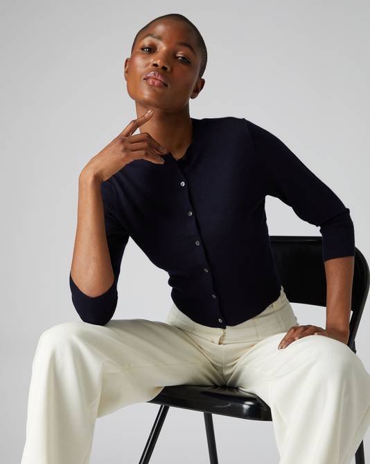 Women's Darcie Superfine Cashmere Cropped Cardigan In Navy Blue