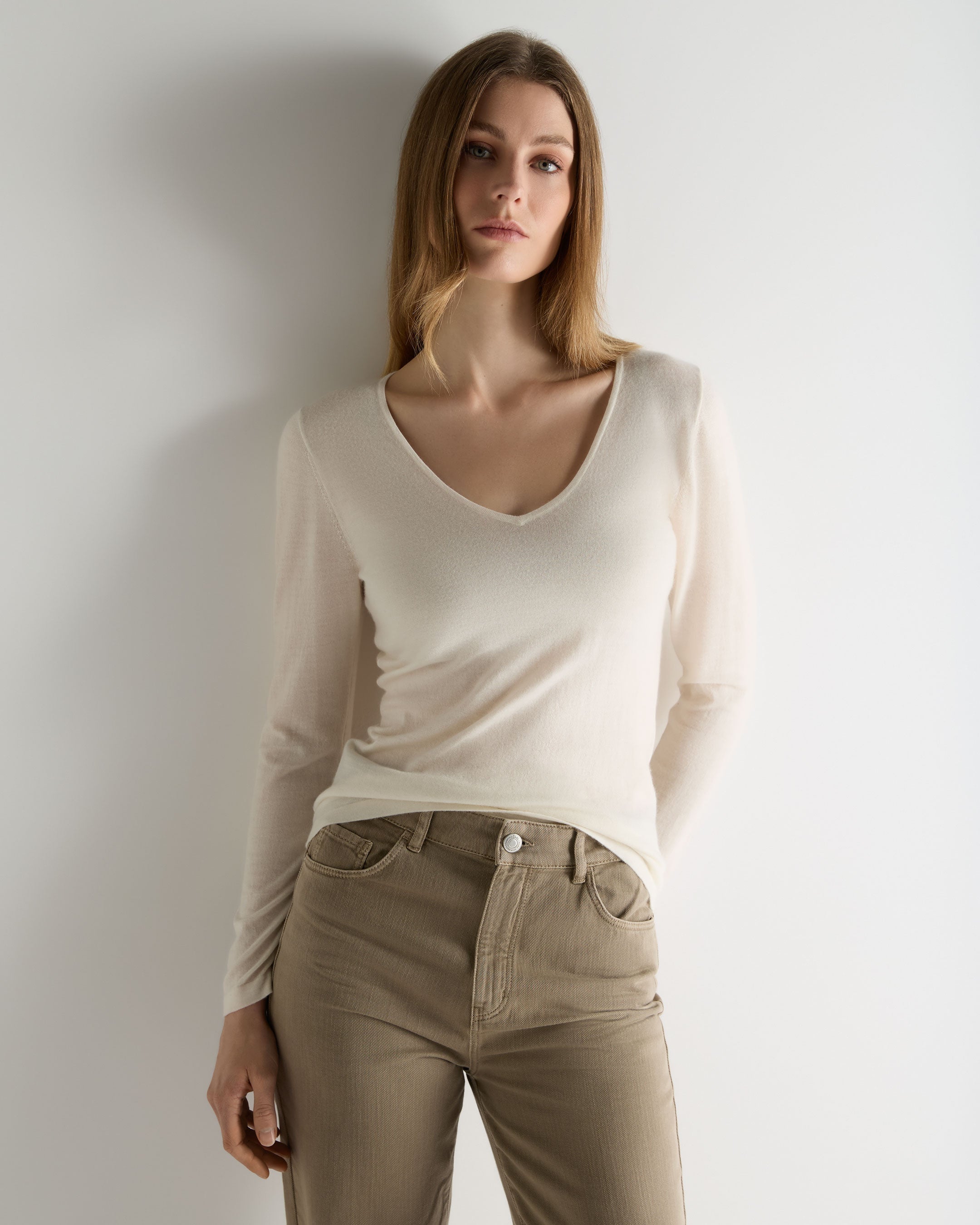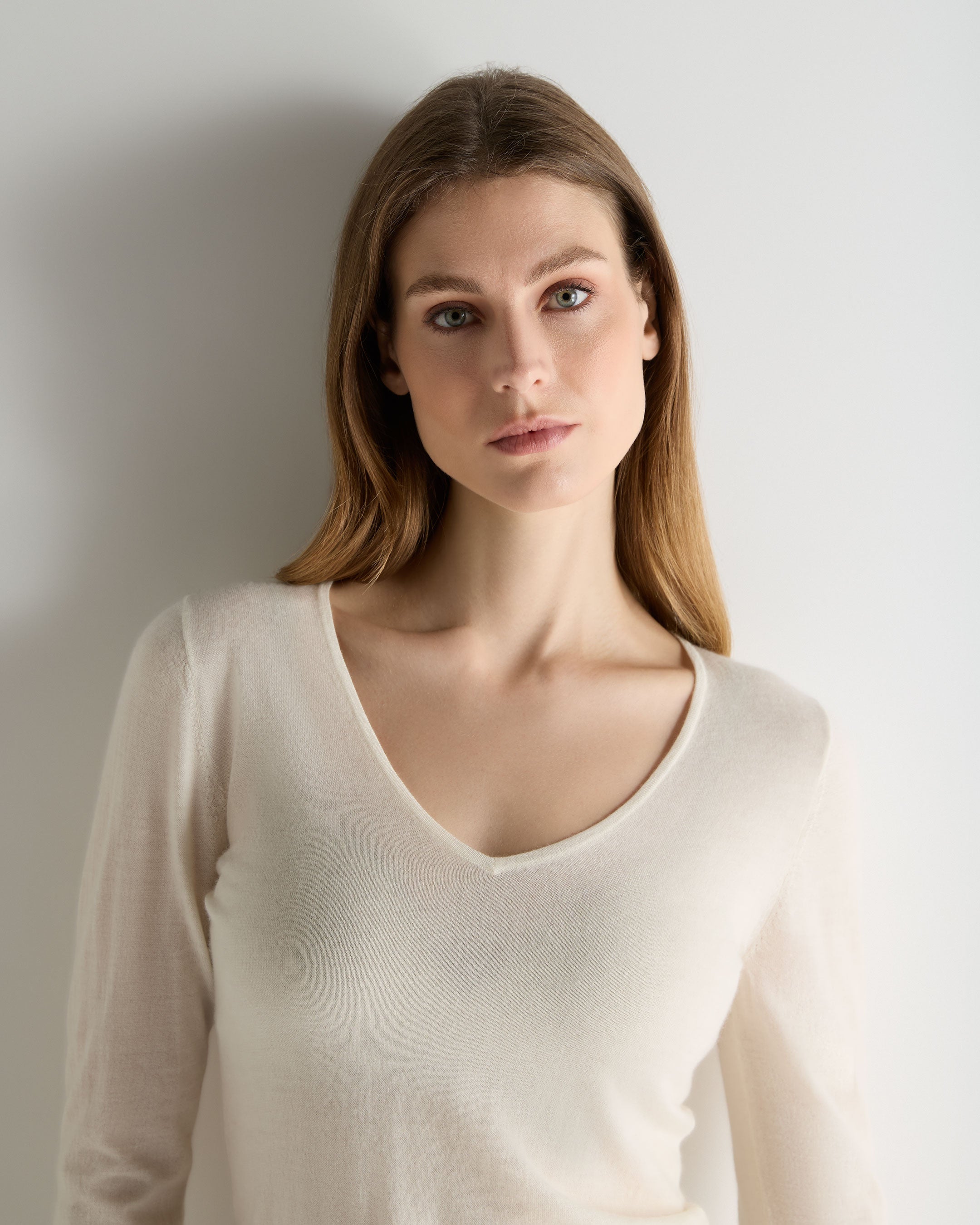 A beautifully simple staple elevated by its superfine finish, this V-neck jumper is designed for effortless sophistication wherever the day leads. The lightweight 1-ply cashmere creates a smooth, second-skin feel, while the refined neckline and clean silhouette make it ideal for layering or wearing solo in warm destinations. Polished enough for smart moments yet relaxed enough for travel, it’s a true foundation piece in any considered wardrobe.