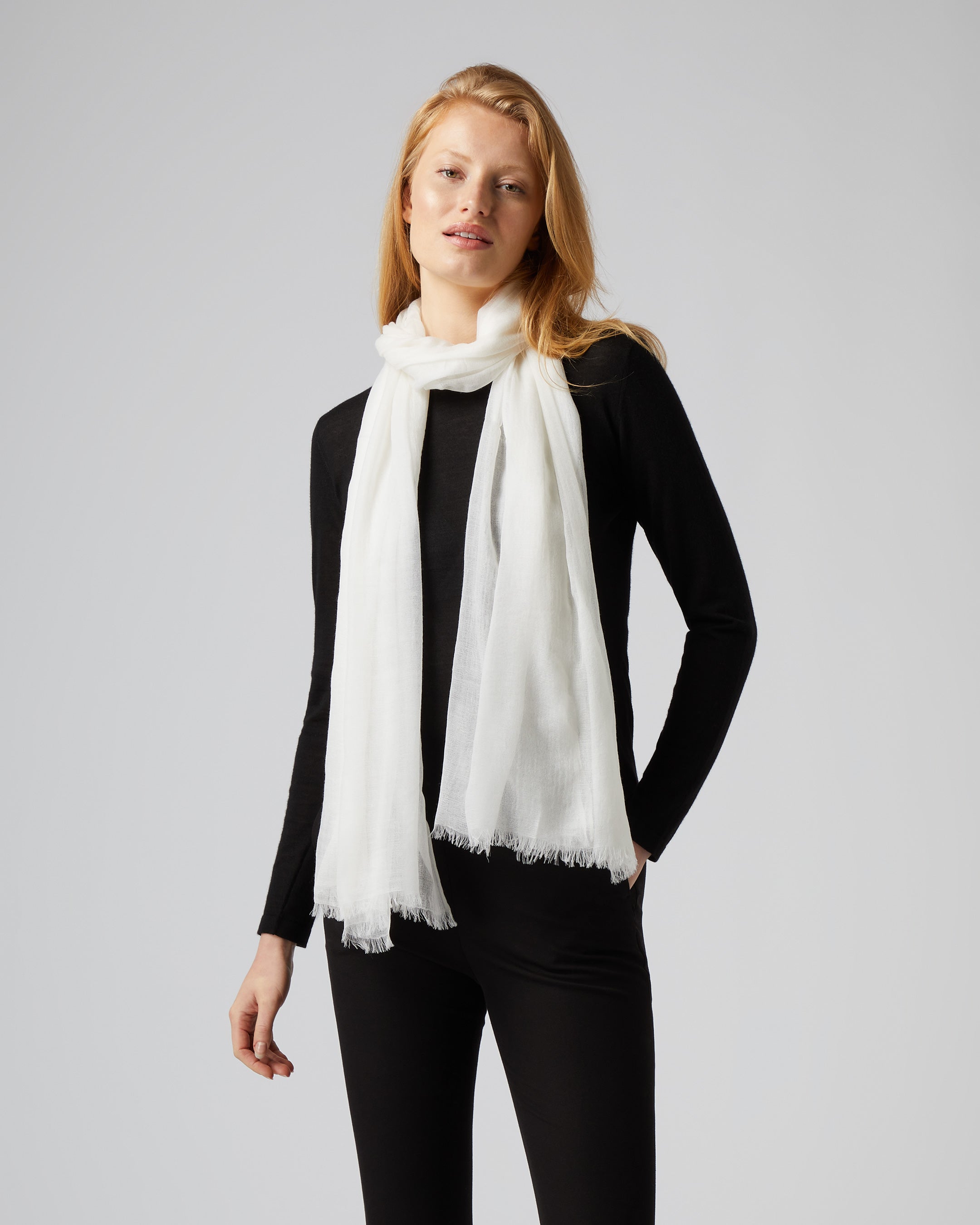 This ultrafine shawl offers an elegant layer for transitional travel and effortless dressing. Designed to drape with ease, it brings a whisper of warmth while maintaining a weightless feel — ideal for elevating your everyday or perfecting your in-flight ensemble.