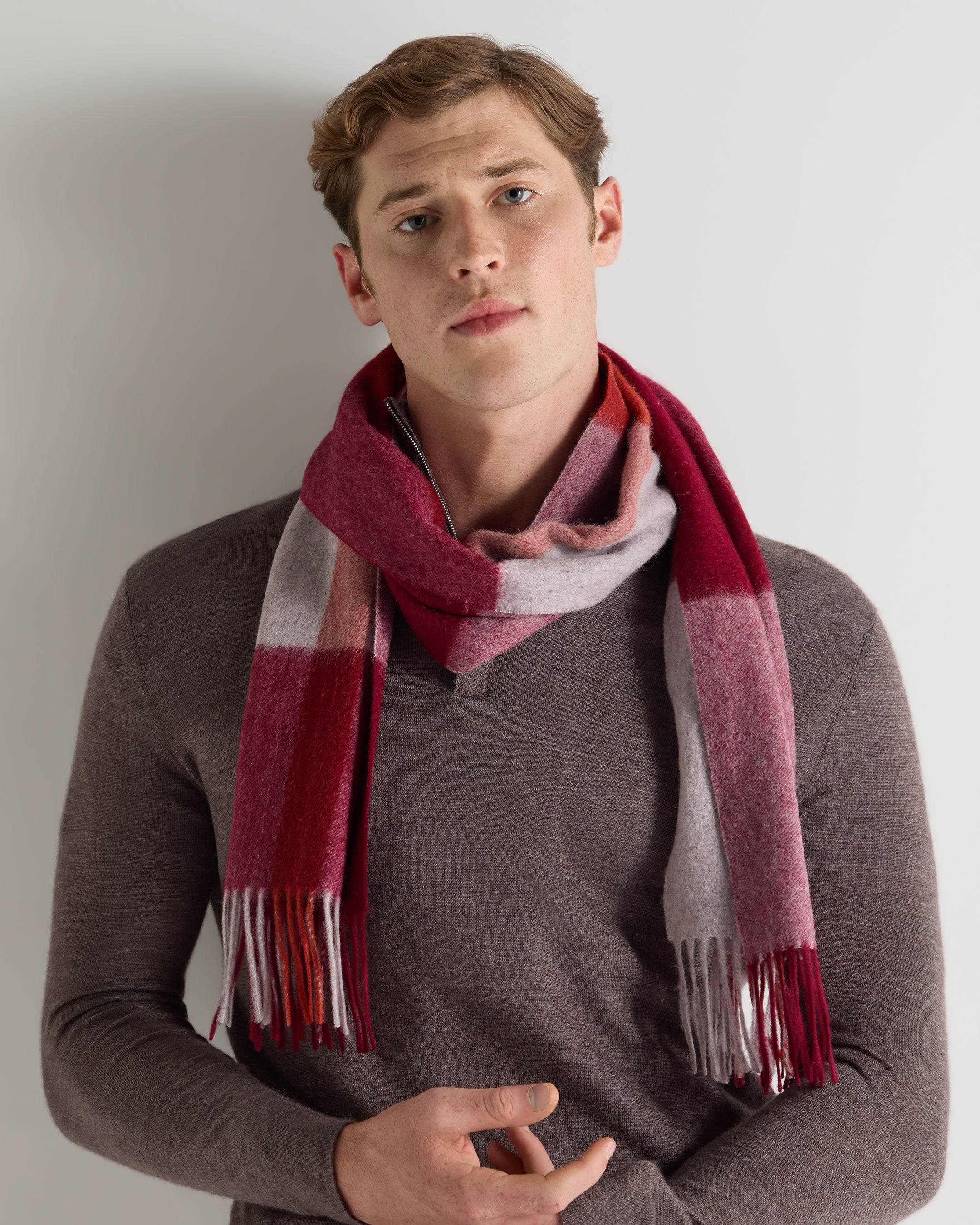 Unisex Cashmere Check Scarf In Red + Grey