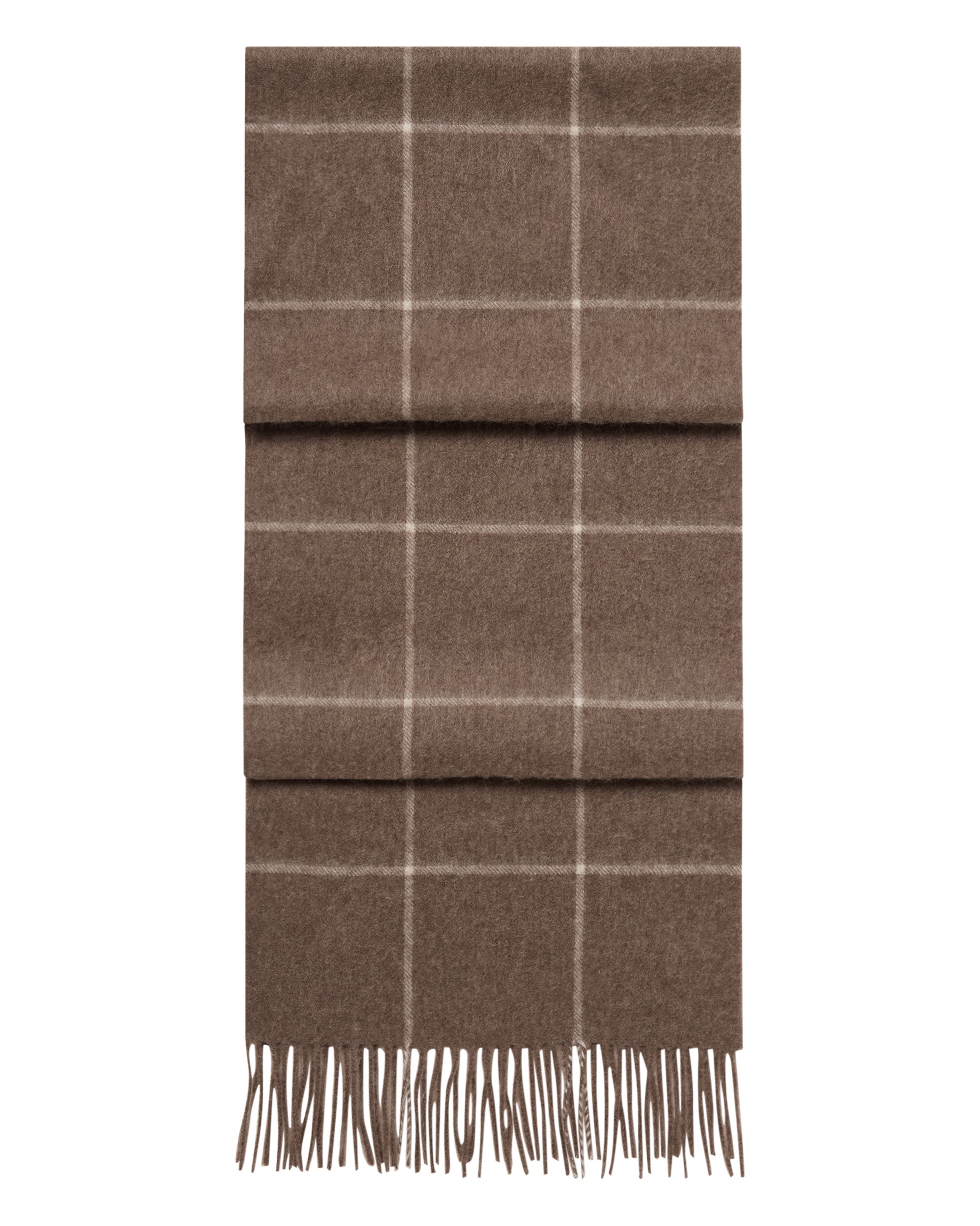Unisex Cashmere Check Scarf In Taupe Brown + Natural Brown