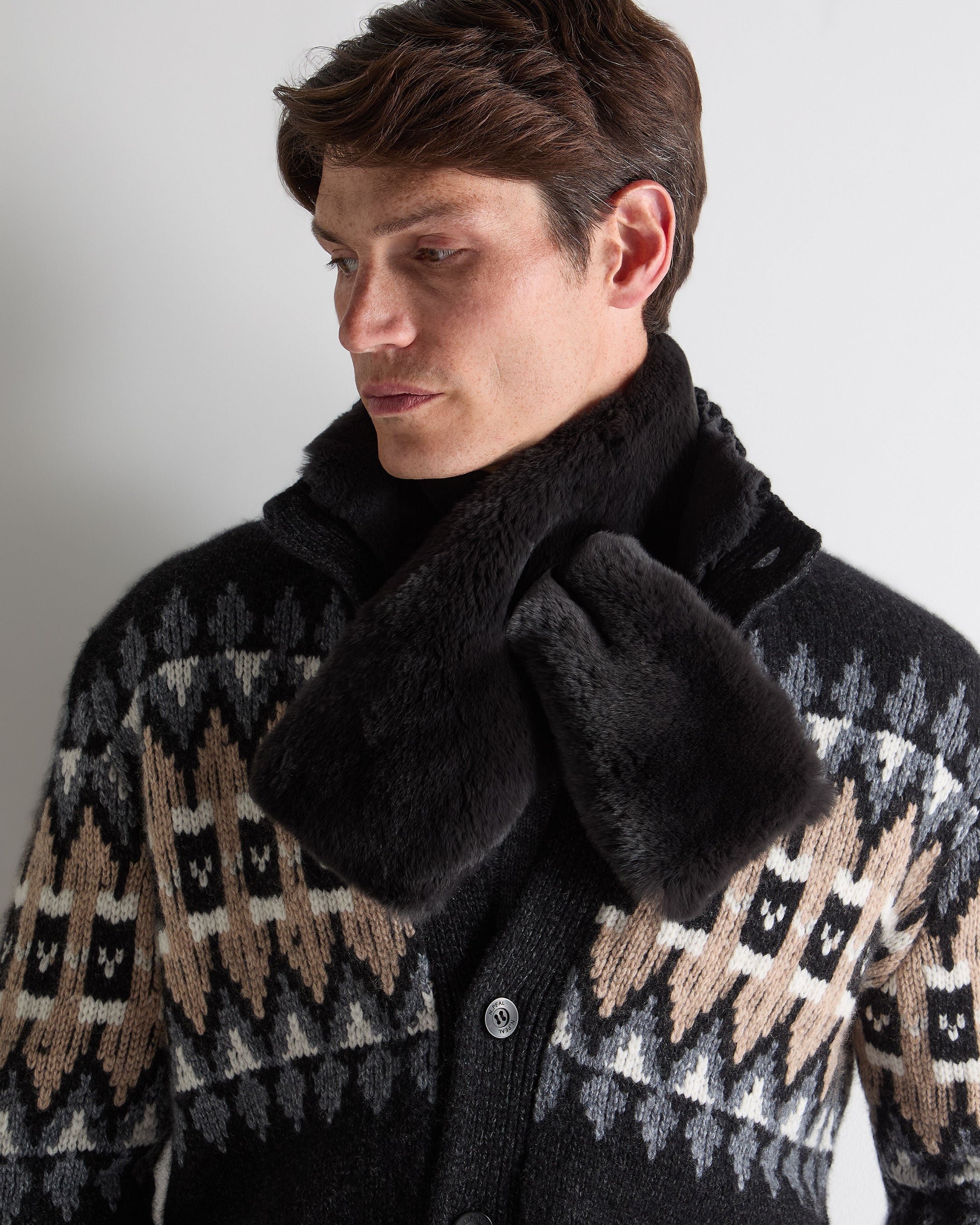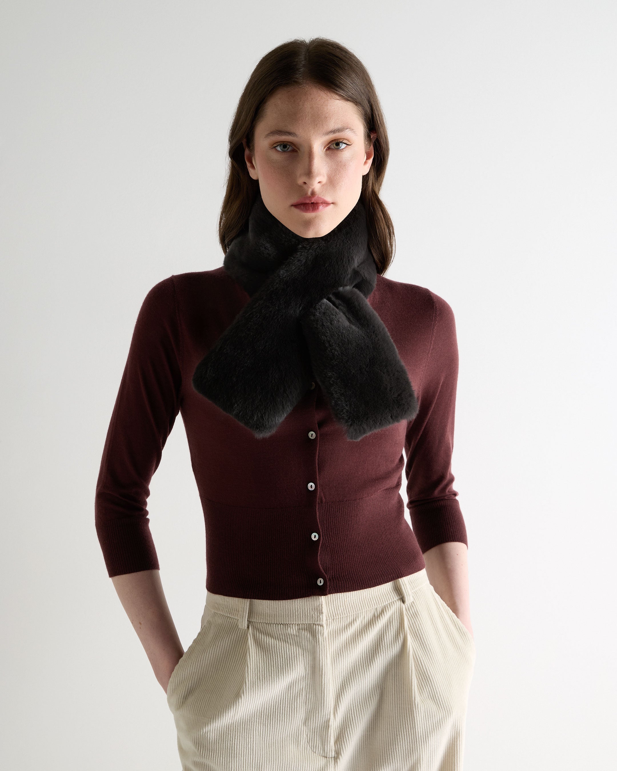 Effortless to wear and refined by nature, this fur-trimmed neckwarmer offers a sophisticated way to elevate cold-weather layers. Compact and versatile, it sits neatly over outerwear or beneath tailoring — perfect for travel days, outdoor occasions or après-ski evenings.