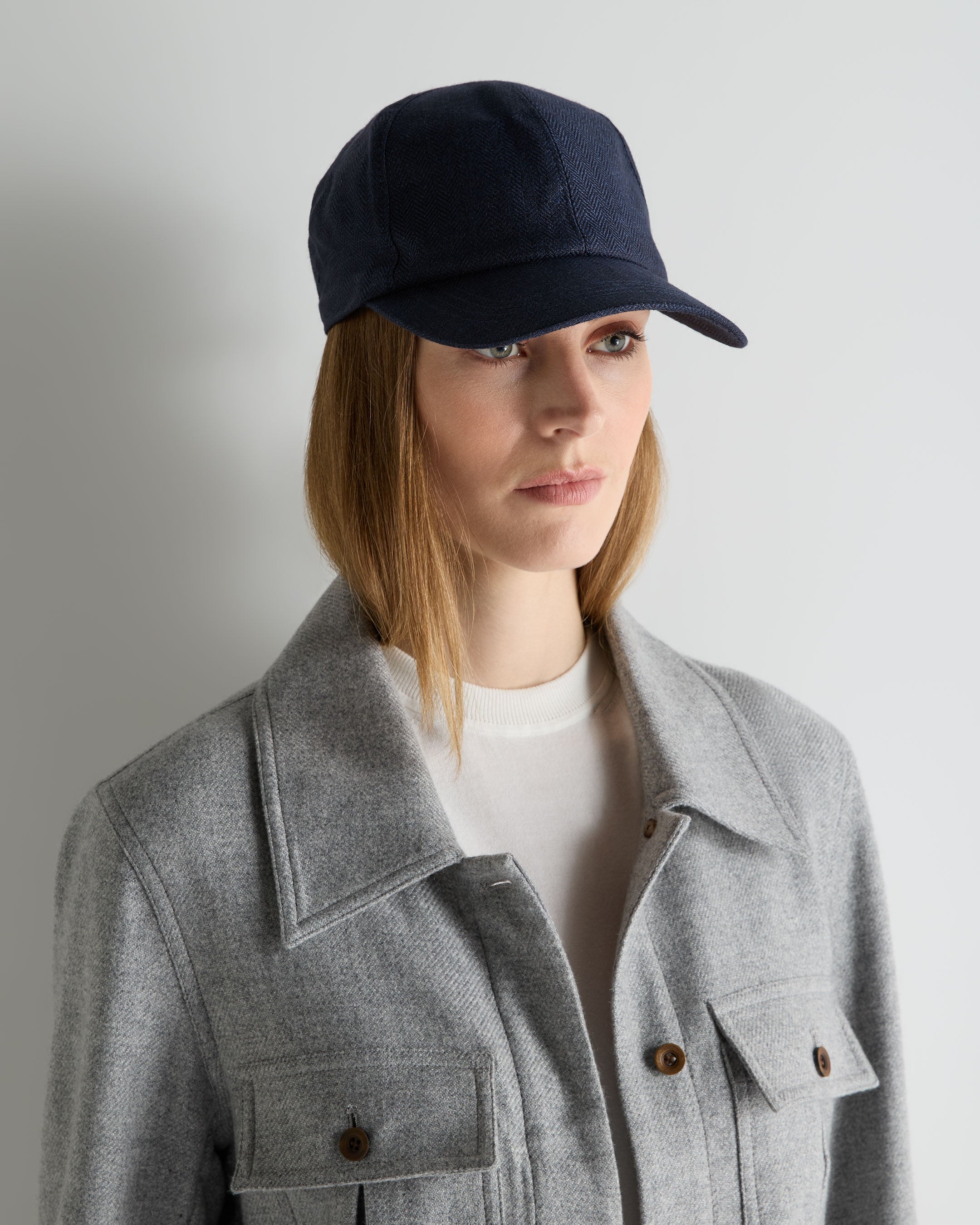 Unisex Linen Herringbone Cap In Navy Blue