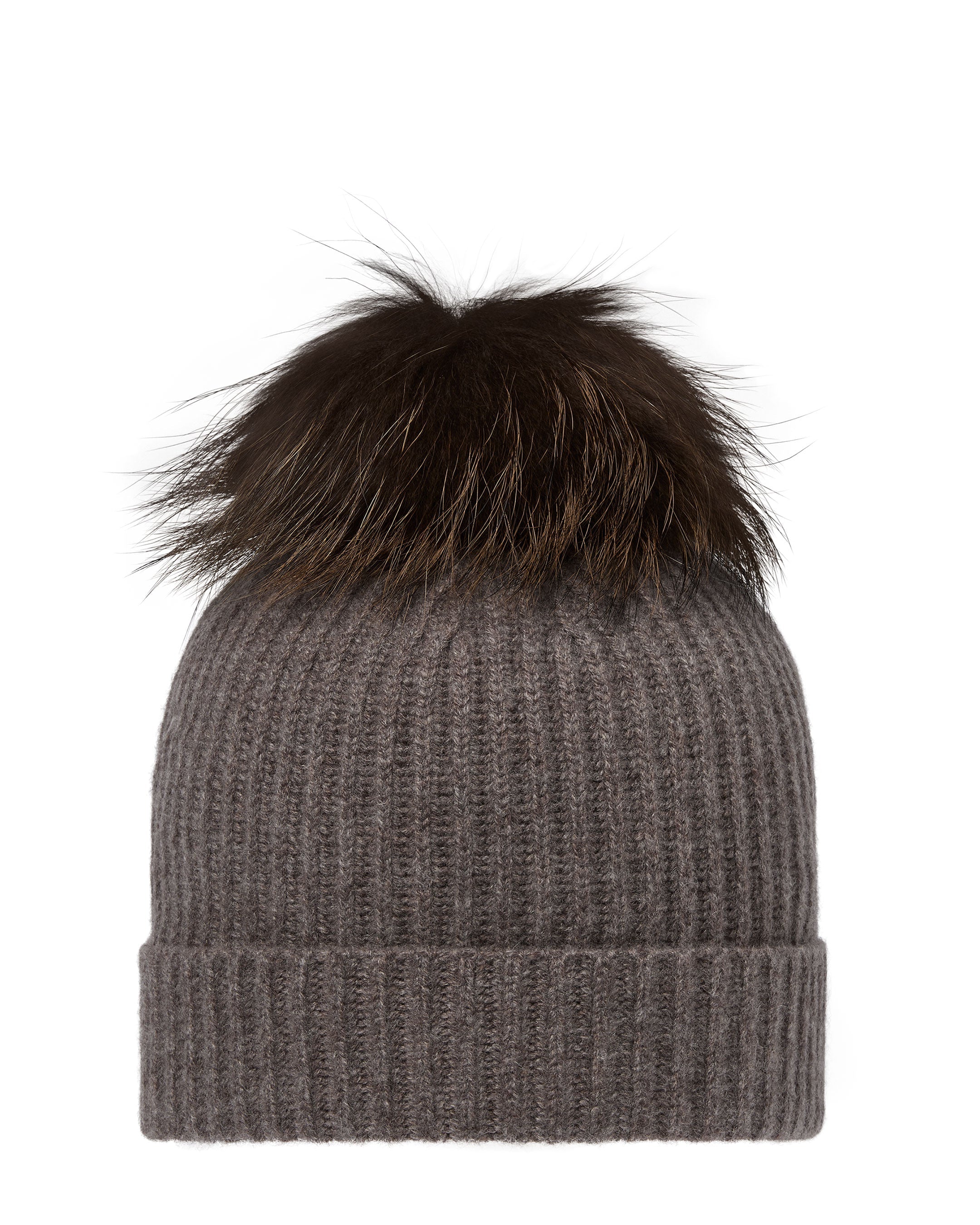Unisex Ribbed Cashmere Hat With Detachable Pom In Otter Brown