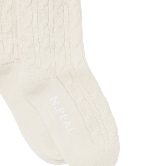 Designed for laidback luxury at home, these cable-knit house socks bring a refined edge to everyday comfort. The soft two-ply cashmere blend is subtly structured with nylon for shape retention, while the ribbed cuff keeps them securely in place. Finished with the N.Peal logo on the sole, they’re a small indulgence with year-round appeal.