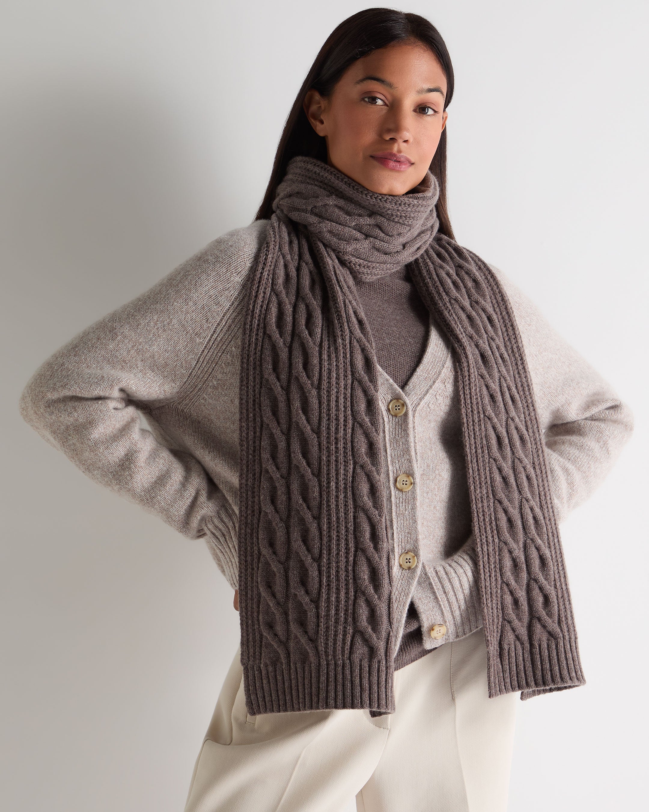 An elevated cold-weather companion, this cable-knit scarf brings together warmth, texture and timeless appeal. Expertly crafted from 100% organic 3-ply cashmere, it offers a luxuriously soft hand feel and a refined drape — perfect for effortless layering from weekday commutes to weekend getaways.