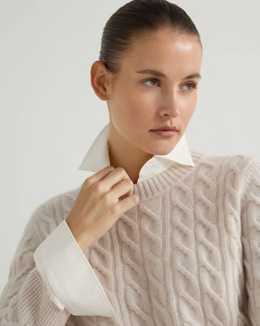 Take a look at this beautiful round neck sweater in cable cashmere.