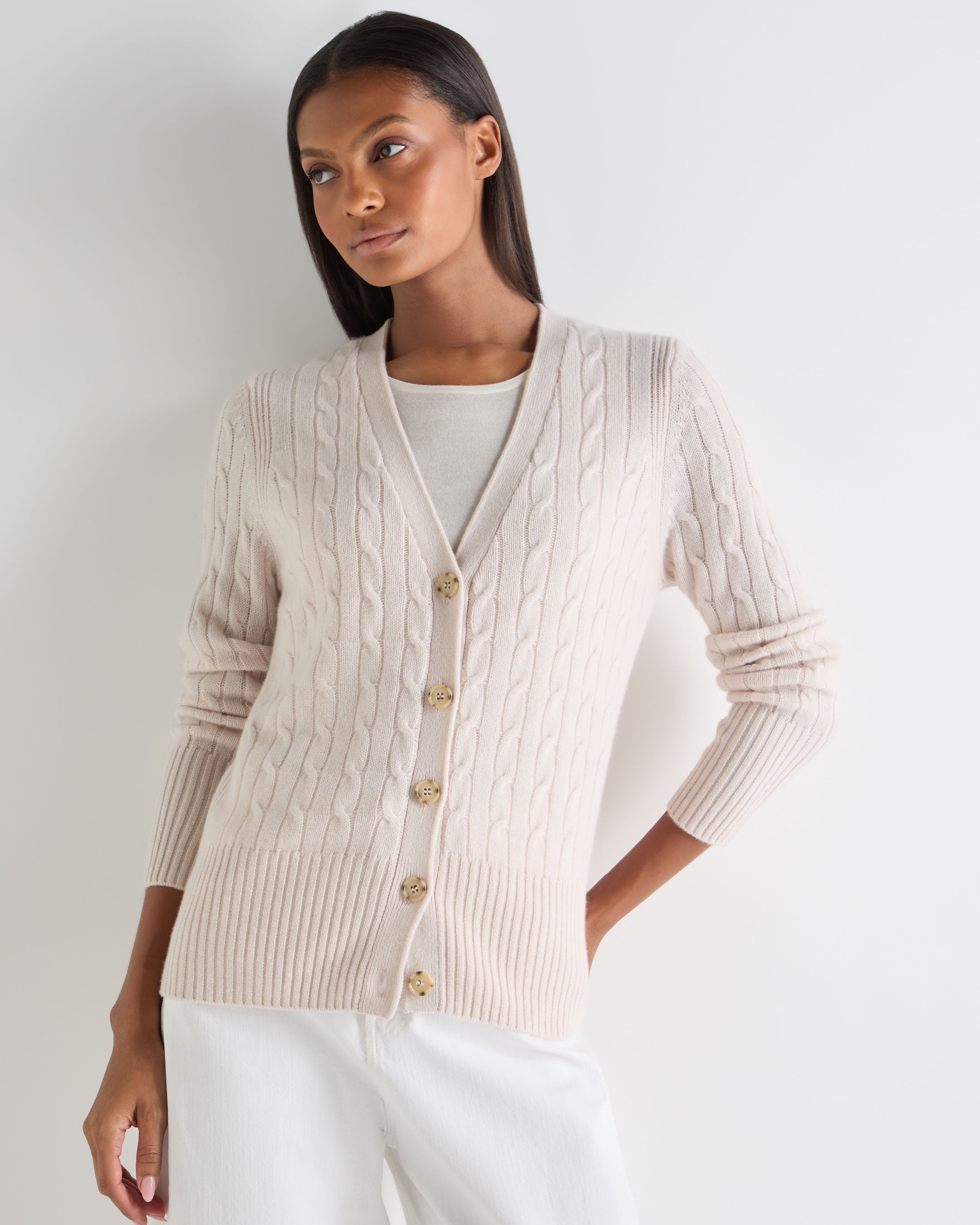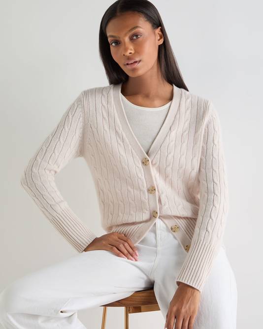 Women's Clara Cable V Neck Cashmere Cardigan In Dove Pink