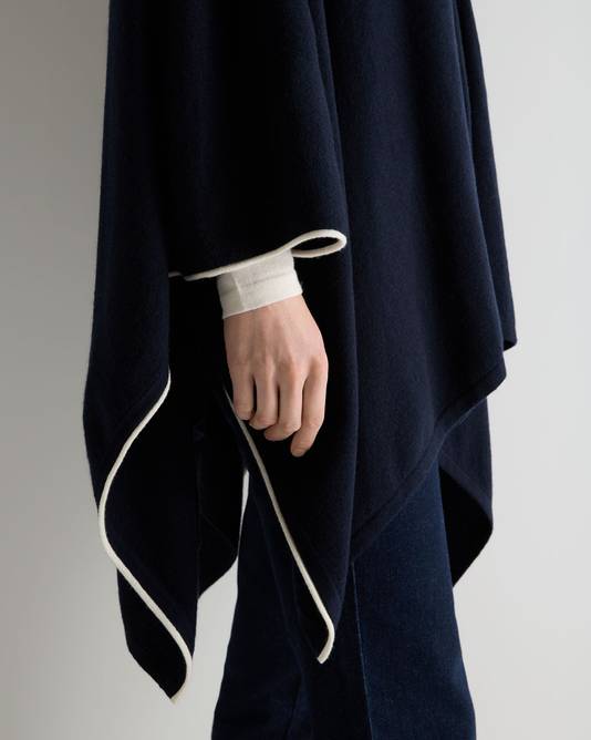 Women's Contrast Trim Cashmere Cape In Navy Blue