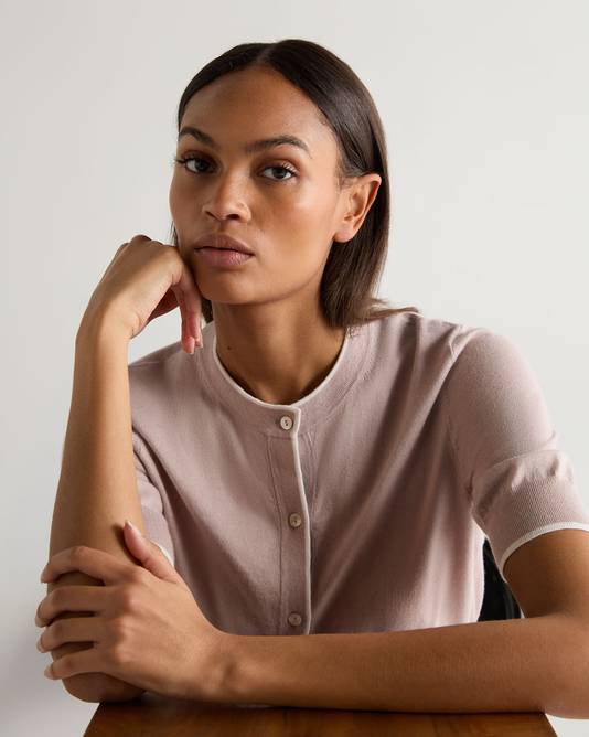 Women's Cotton Cashmere Short Sleeve Cardigan In Dune Pink