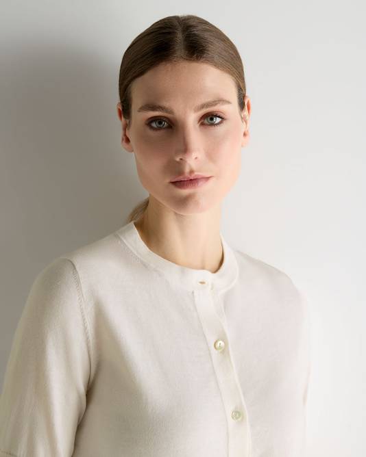 A refined warm-weather layer designed for days spent travelling light. This short-sleeve cardigan brings the ease of a T-shirt with the polish of fine knitwear, moving effortlessly from daytime plans to relaxed evenings at destination.
