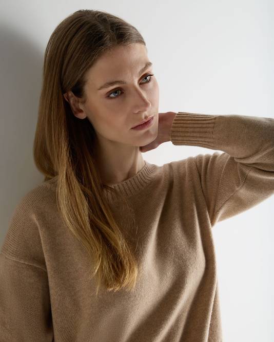 – Knitted from 100% organic cashmere in a 2-ply construction for a smooth, substantial handle