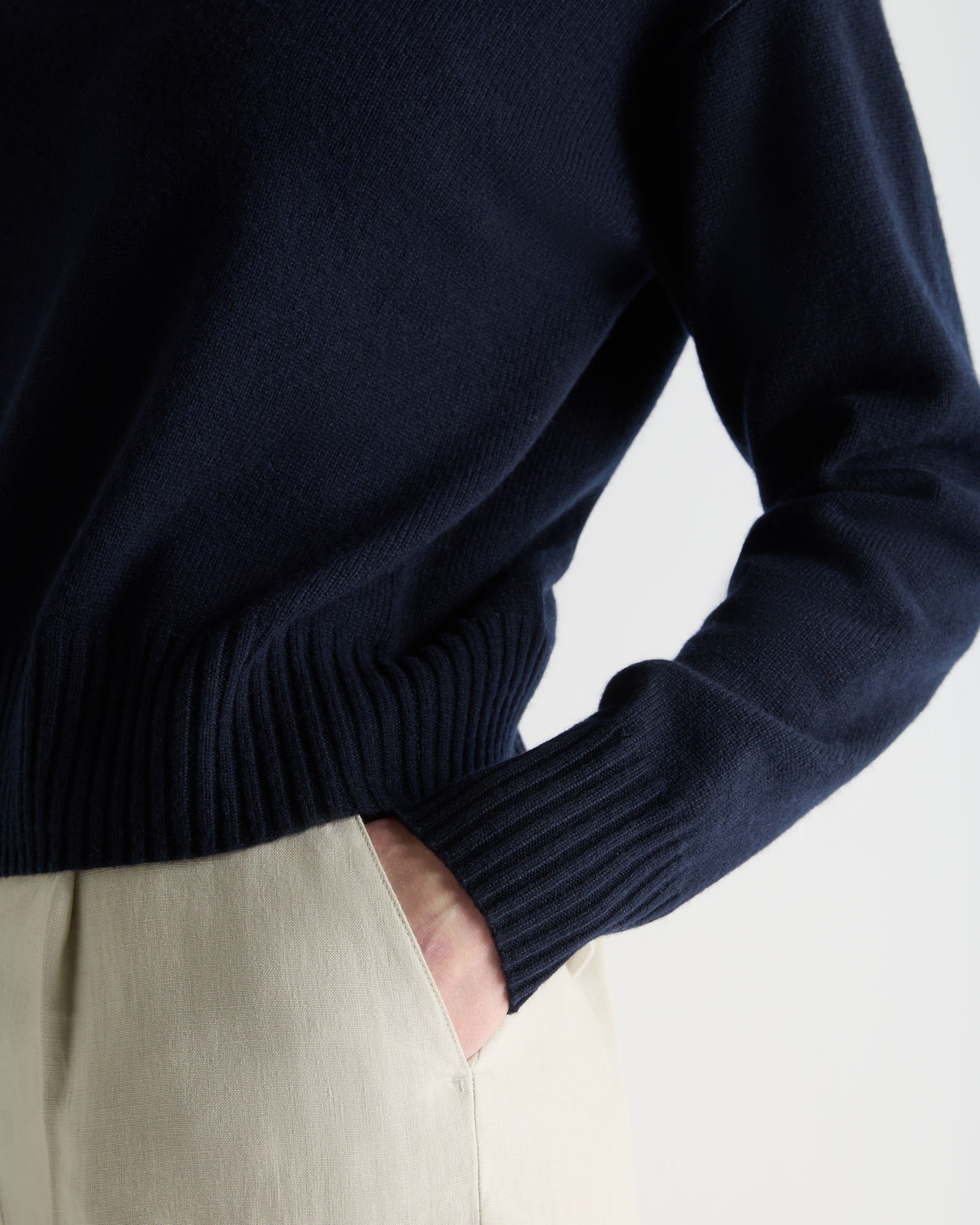 – Knitted from 100% organic cashmere in a 2-ply construction for a smooth, substantial handle
